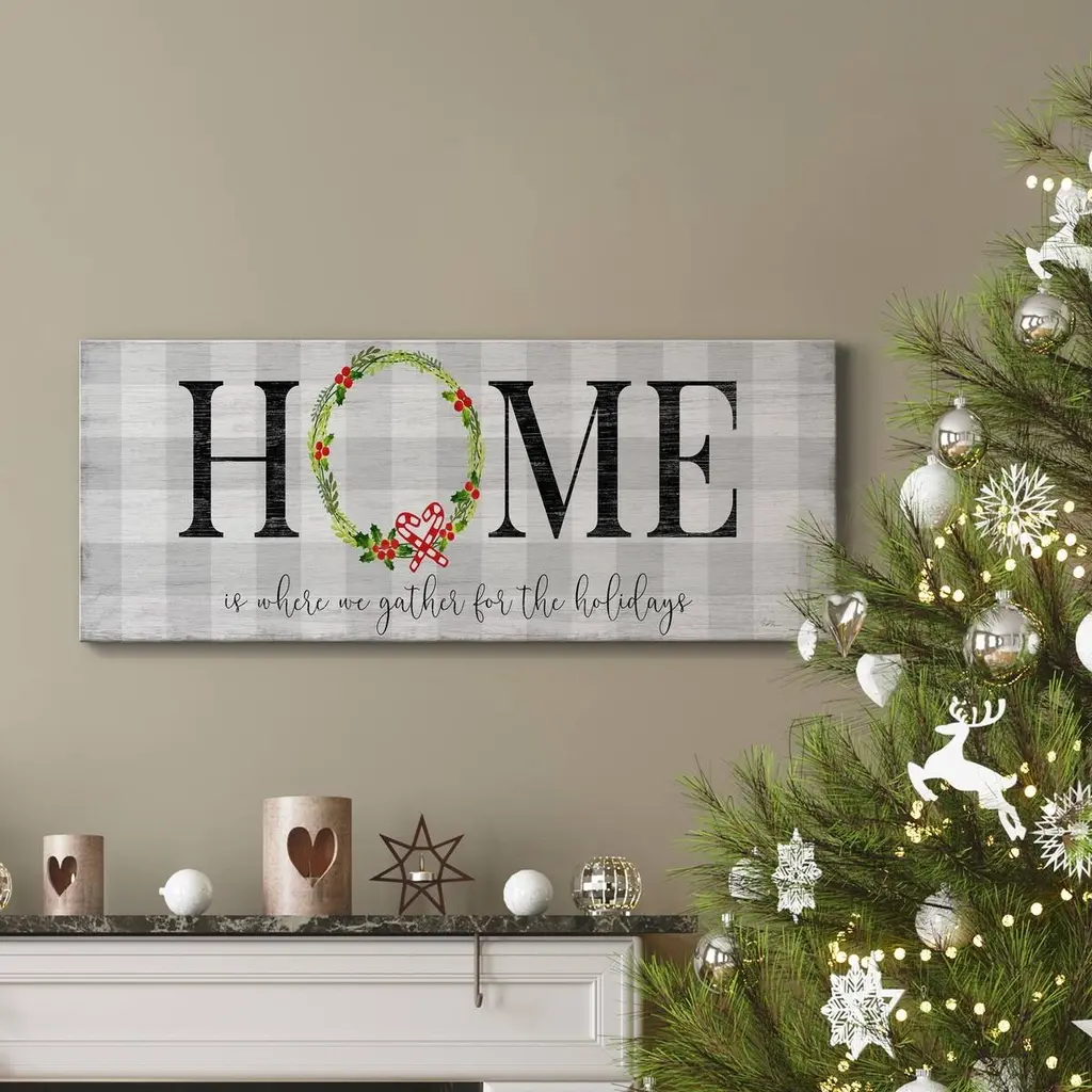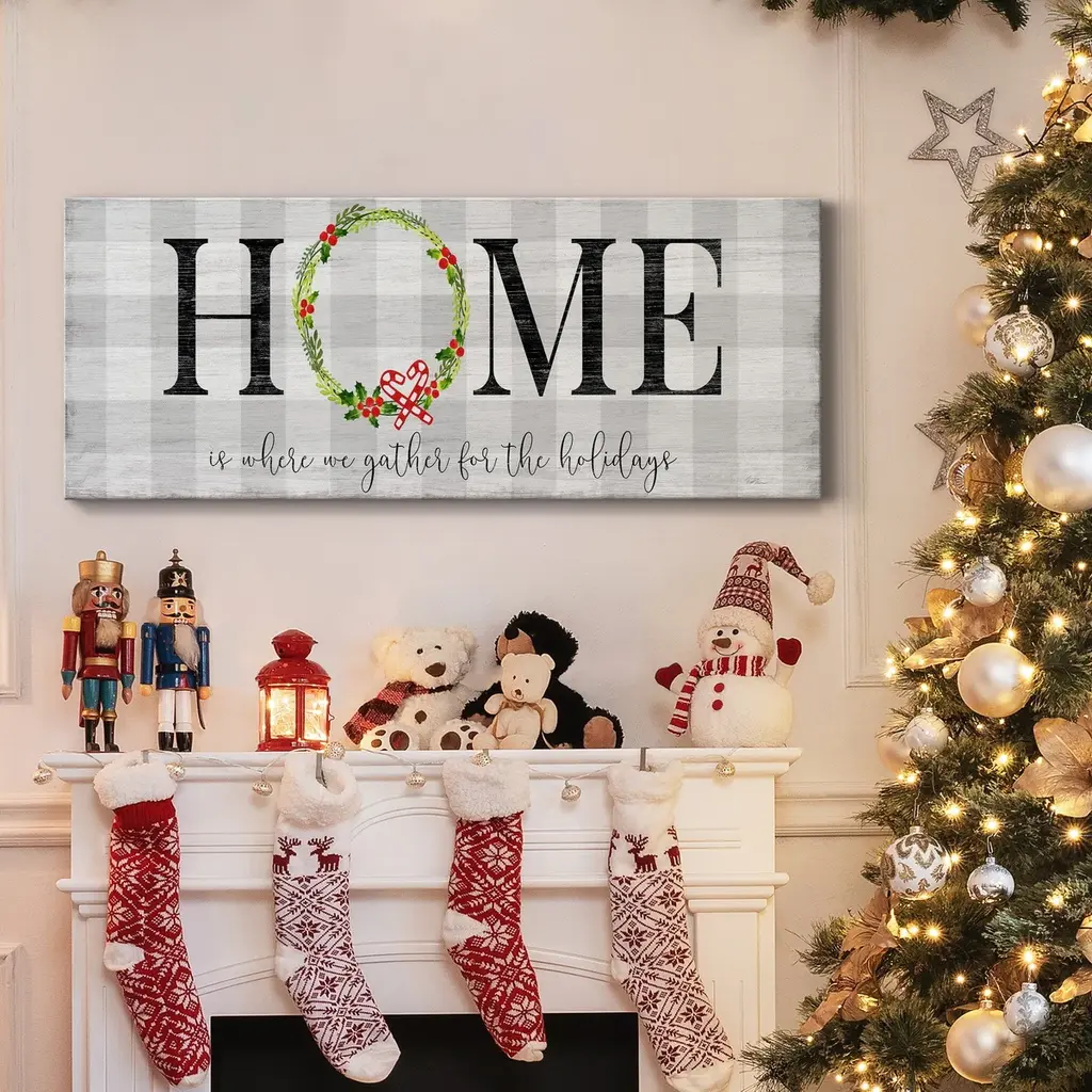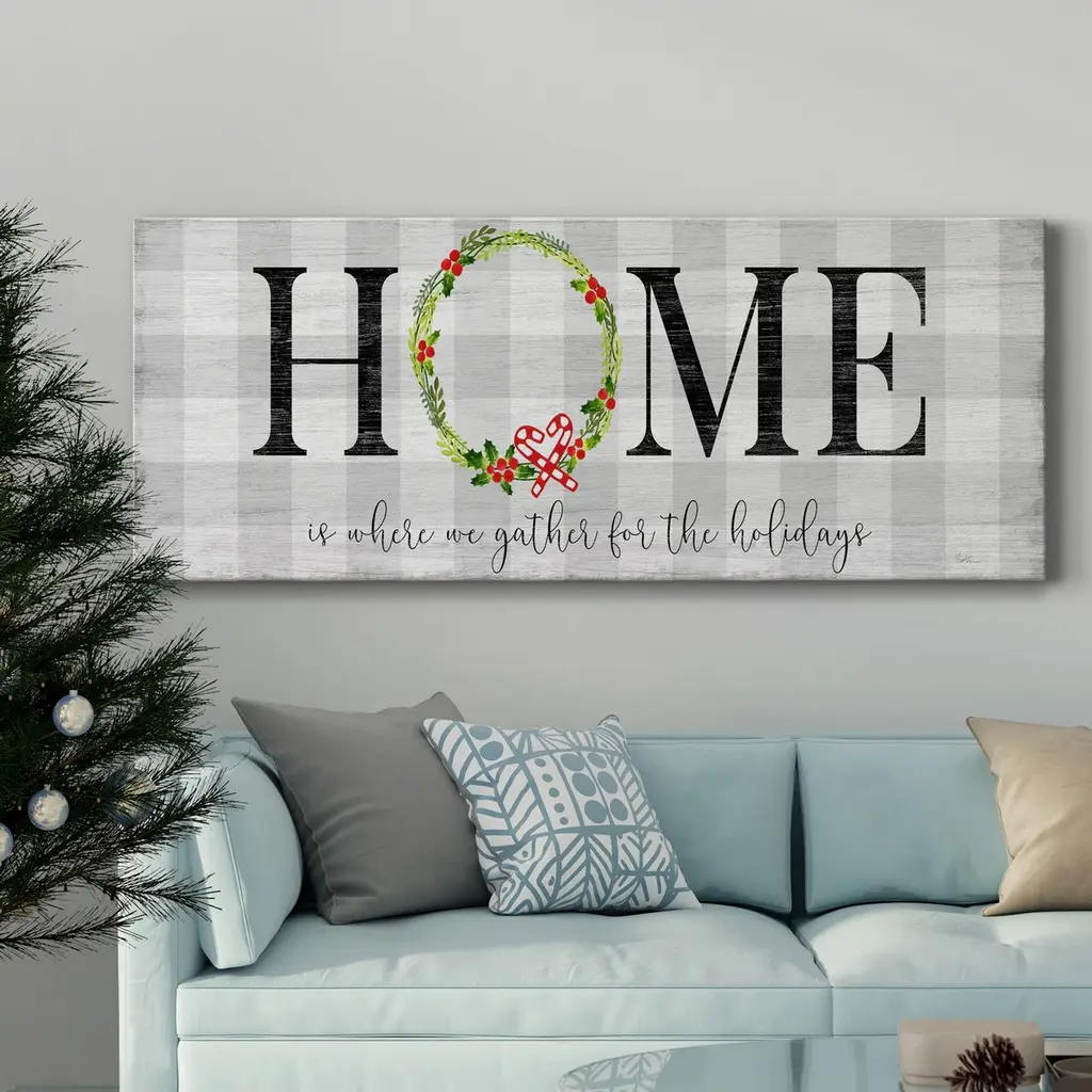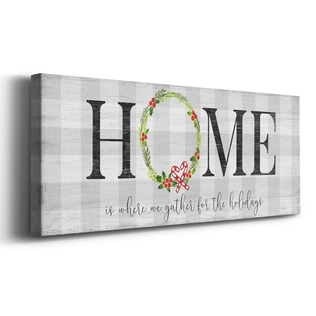 Gather for the Holidays Premium Gallery Wrapped Canvas - Ready to Hang A premium hand stretched gallery wrapped canvas print created to last. Featuring a beveled solid wood stretcher bar. 3 SIZES AVAILABLE 8'' X 20'' - Overall Size 12'' X 30'' - Overall Size 20'' X 50'' - Overall Size Each piece is made to order. Built to Last Each piece comes ready to hang Solid wood stretcher Fade and Water resistant Made domestically