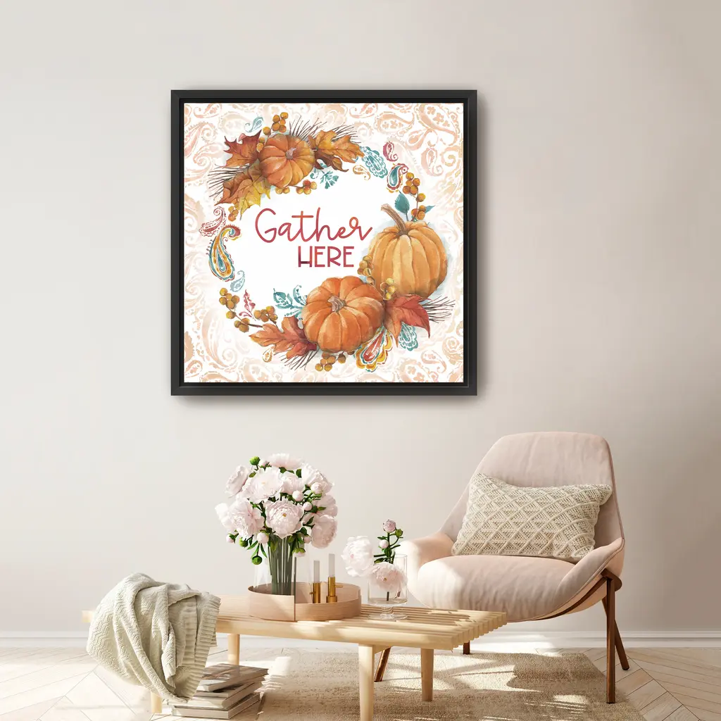 Gather Here Canvas Giclee - Framed / Oak / 20x20