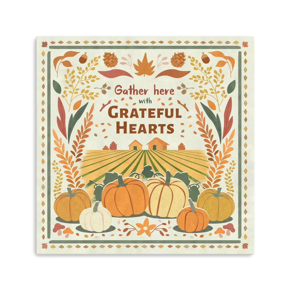 Gather Here With Grateful Hearts Canvas Giclee - Framed / Dark Walnut / 40x40