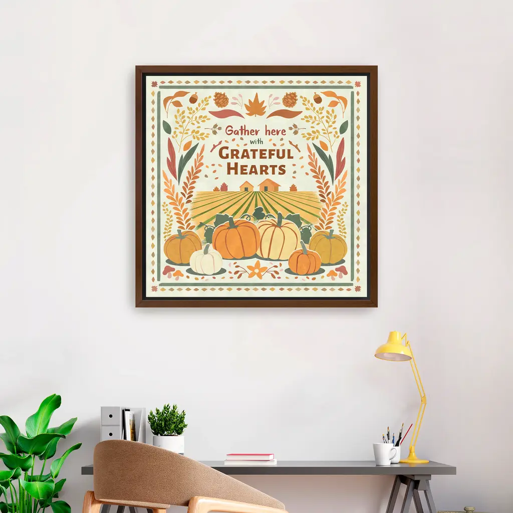 Gather Here With Grateful Hearts Canvas Giclee - Framed / Oak / 20x20
