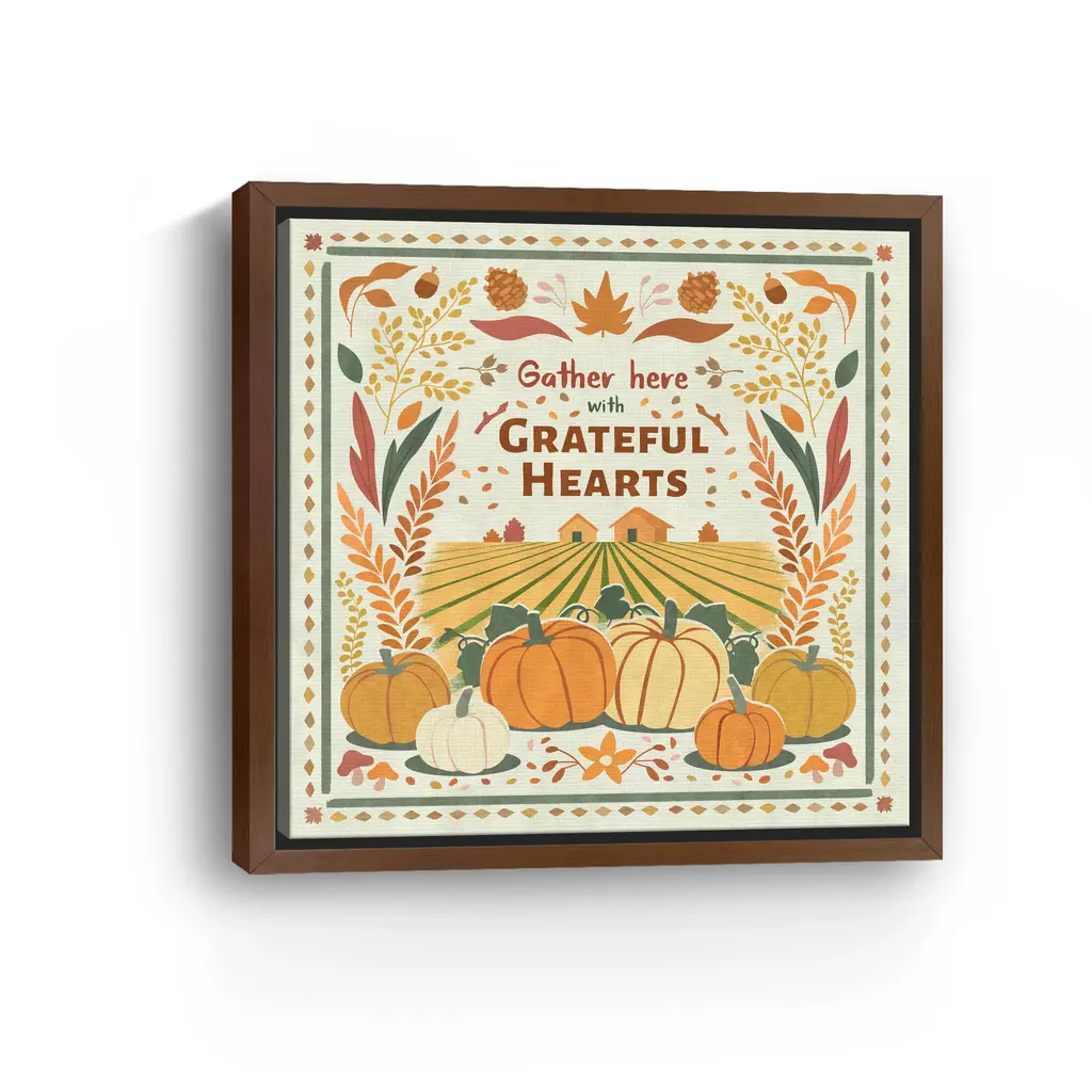 Gather Here With Grateful Hearts Canvas Giclee - Framed / Oak / 30x30