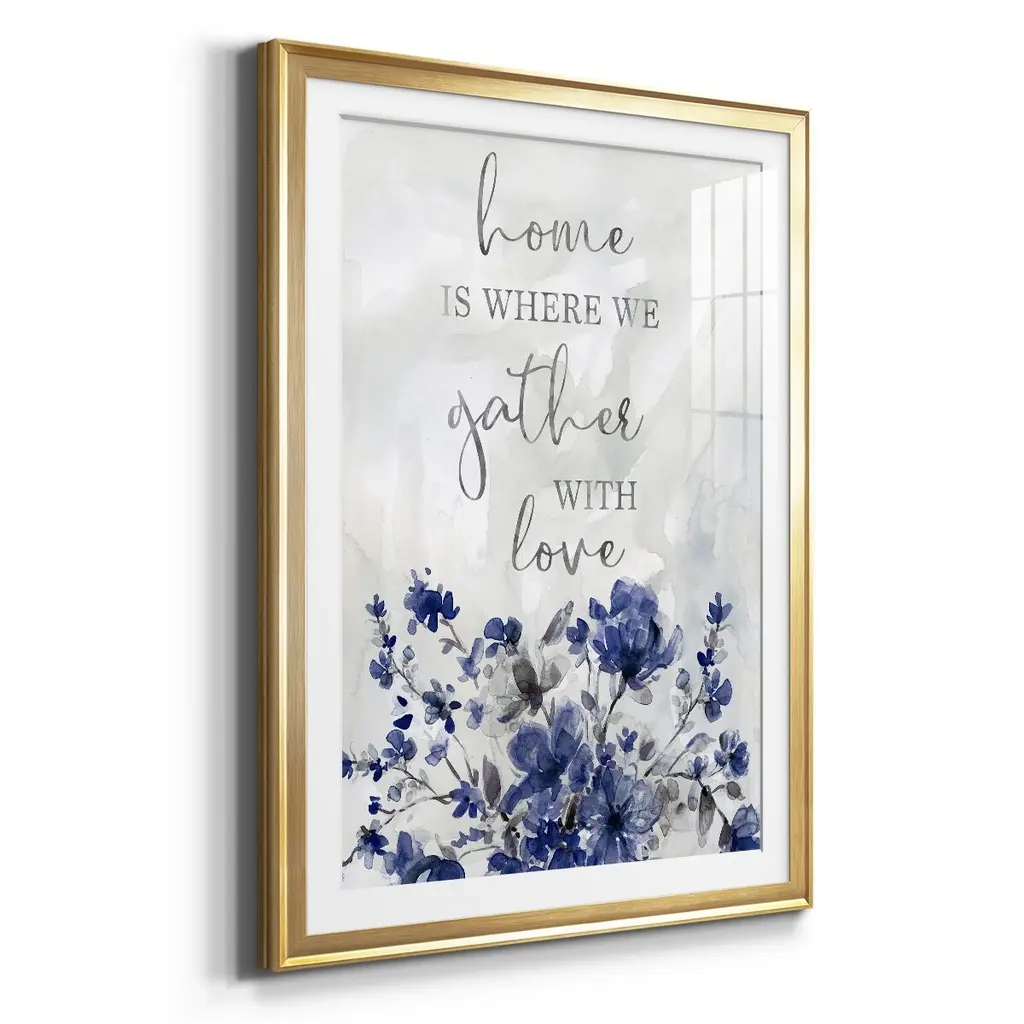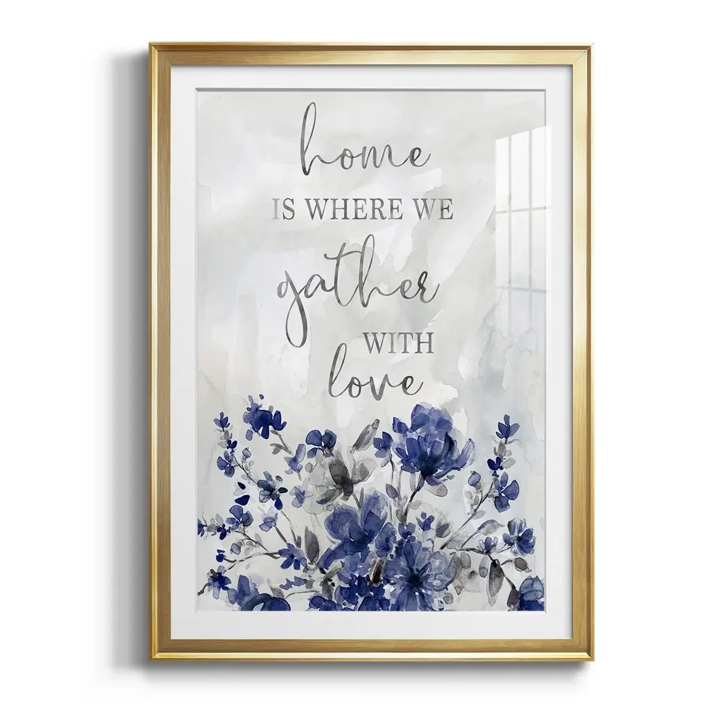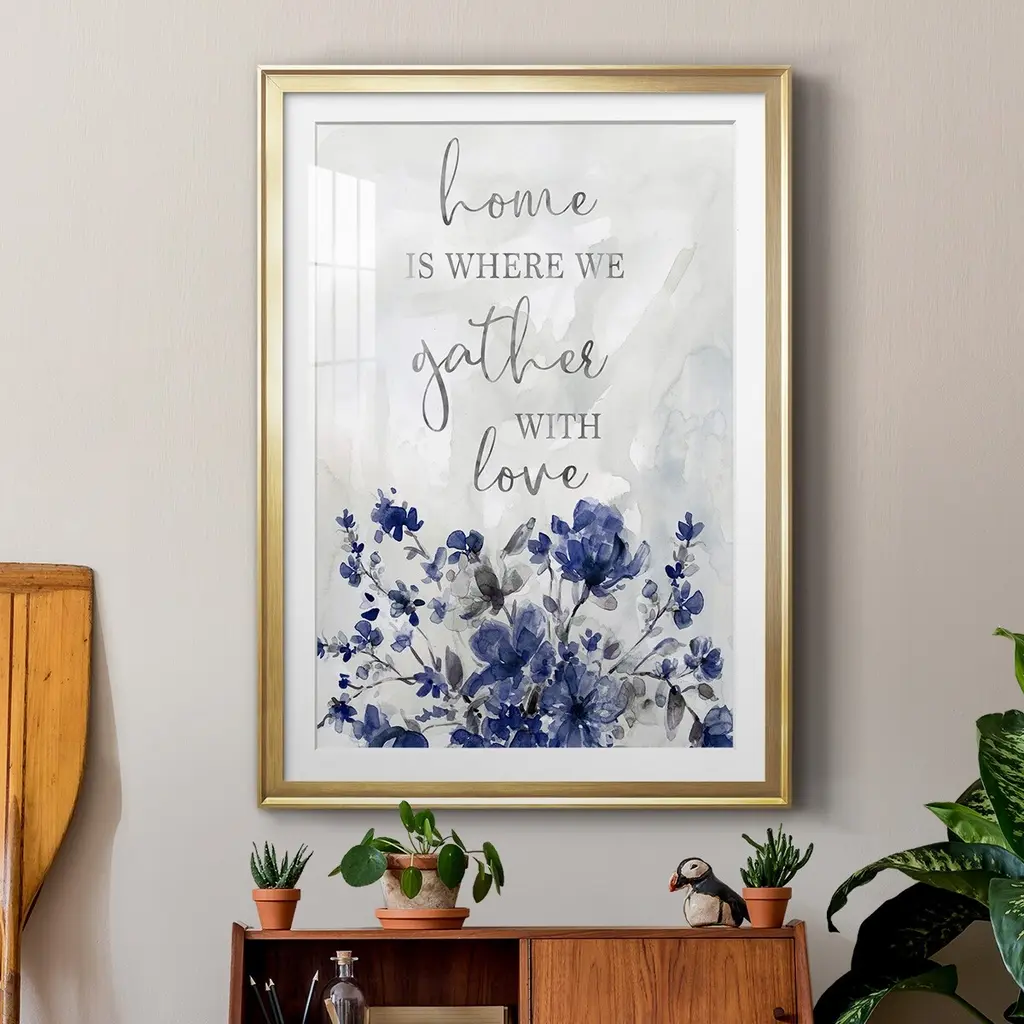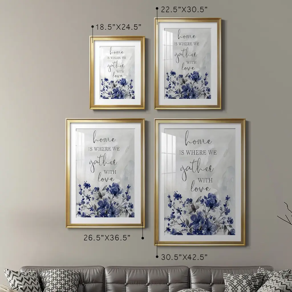 Gather With Love Premium Framed Print - Ready to Hang A Premium Framed Print created to last. Framed in distressed wood and available in an array of sizes and colors Featuring a beveled a solid wood stretcher bar, each piece comes ready to hand 4 SIZES AVAILABLE 30.5''X42.5'' - Overall Size 26.5'X36.5'' - Overall Size 22.5''x30.5'' - Overall Size 18.5''x24.5'' - Overall Size Each piece is made to order. Each piece comes with hanging hardware. Made in the USA Ready to Hang Giclee Paper Print Acrylic Glass Beveled Matt Board