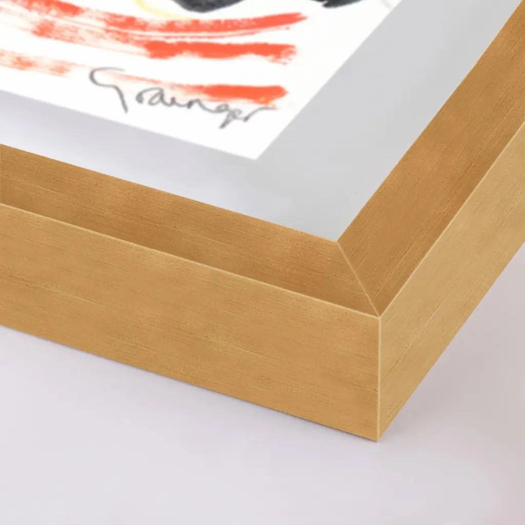 DESCRIPTION: Gathering by Lesley Grainger in Gold Frame, Small Art Print SPECIFICATIONS: Type: Framed Paper. Framed Size (in): 20x24. Orientation: Vertical. Flush/Float/Matted: matted. Frame Color: Gold. Hanging Hardware: Picture Perfect. FRAMING: Each art work arrives framed and ready to hang. We use handmade frames with a plexiglass glazing front, because it offers less glare than standard glass. At this time, we only offer framed prints. ARTIST BIO: Lesley Grainger was born in Yorkshire, England, where she grew up in a small Northern fishing town and currently resides in Orange County, California. She received a B.A. in Illustration and Design from the University of Lincoln. Early in her career, she worked as graphic designer and later began to produce children’s books and licensed artwork. For the last several years her main focus and passion has been abstract painting. She works intuitively and thoughtfully while discovering new and interesting colors and compositions. Painting is a reflection of experience and what Lesley has found is that each painting is translated to the next, like an ongoing story. Discovery is key in Lesley's expression, as she works with the canvas, adding and removing elements. This pushes her to new levels and brings a sense of how art can change the way we think, feel, and connect with the world.