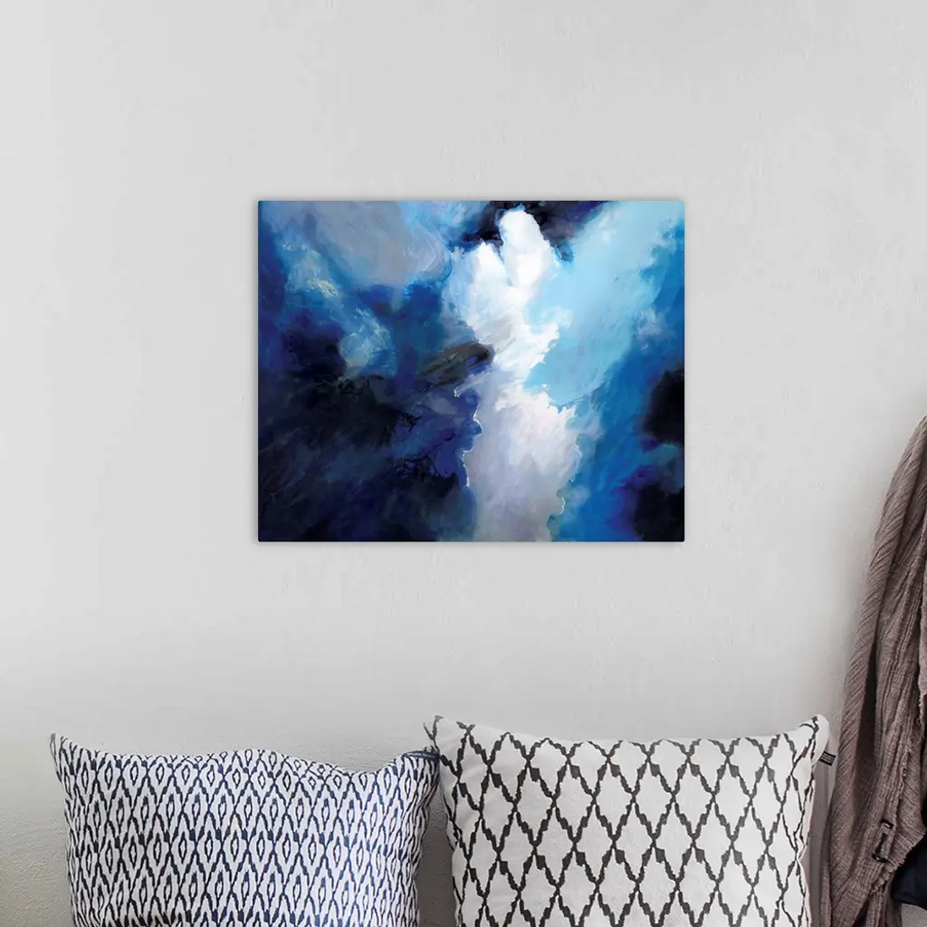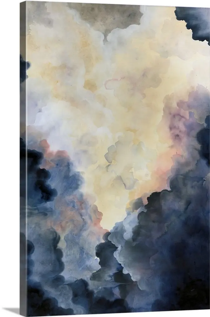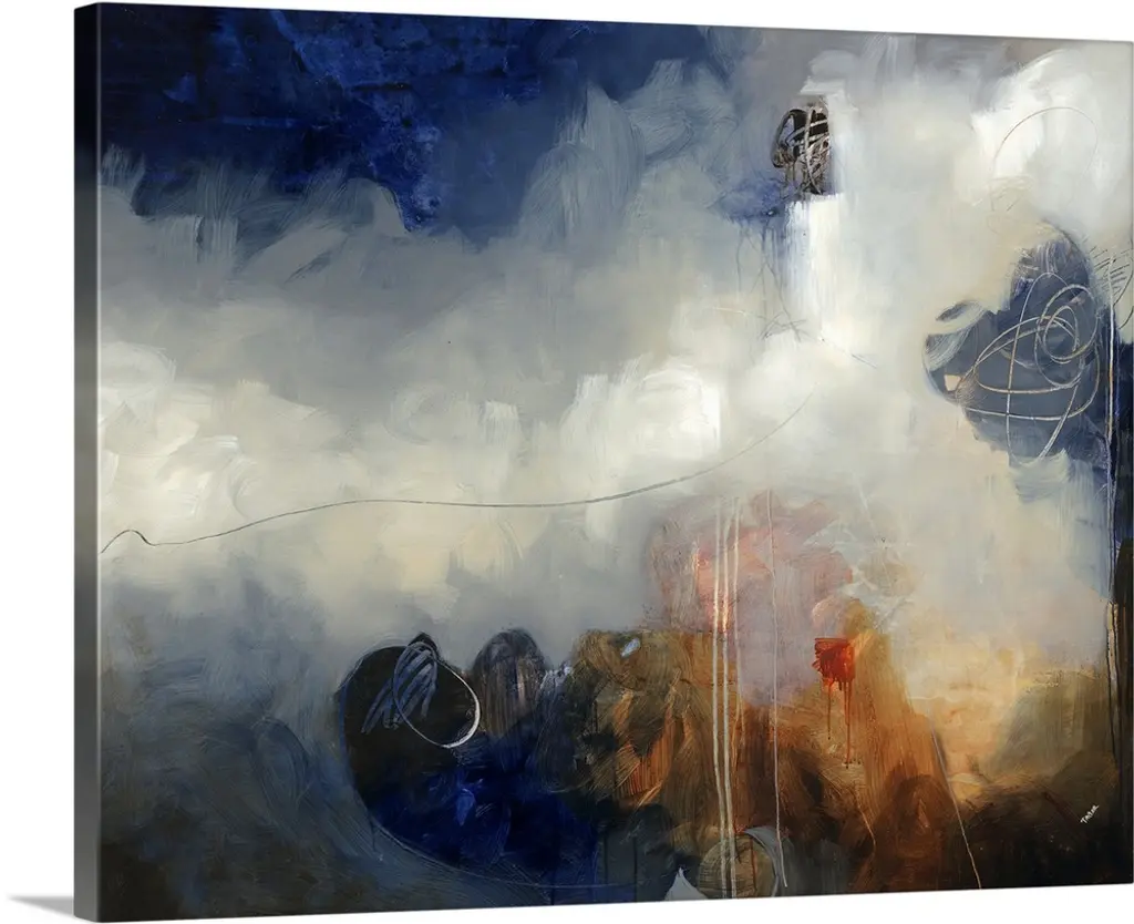 Contemporary abstract artwork resembling dark clouds before a storm.