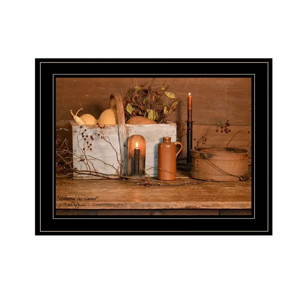 This gathering the harvest 3 black framed print wall art will add a beautiful decorative accent to your decor. This print is a visual artistic expression that allows you to decorate your space in style. Reproduced for you on wood, this hanging decorative accent will be a trendy and fashionable way to dress your walls in a rustic and modern farmhouse vibe. Hang on your wall to add some up to date fashion and decoration. Instantly liven up your space with this art that brings color and dimension to your walls. 15" H x 19" W x 1" D