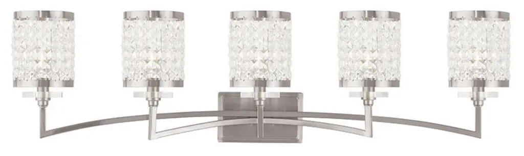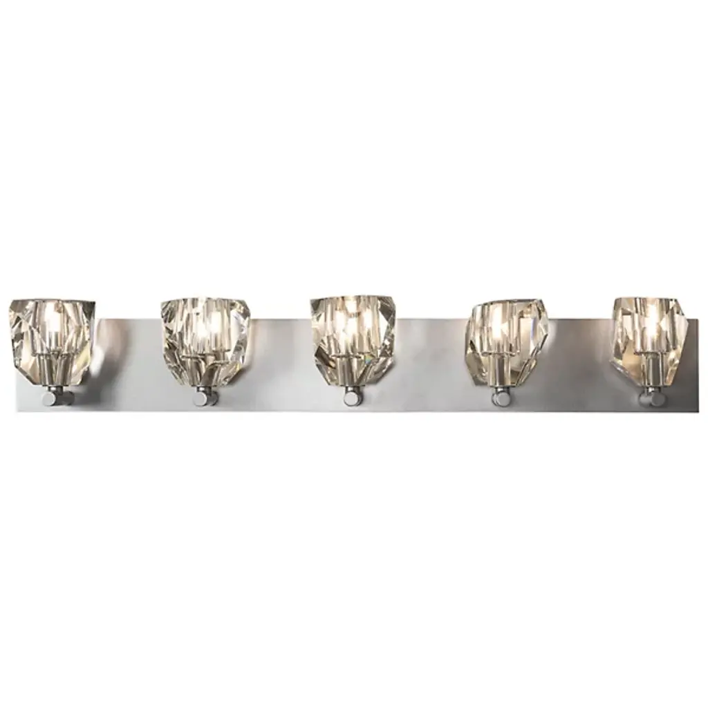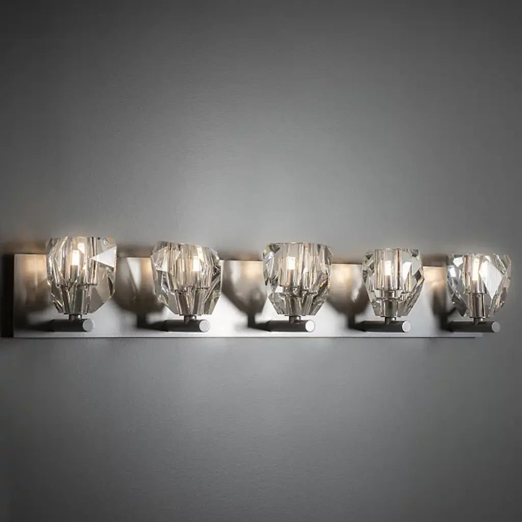 Inspired by the glitz and the glam of old world Hollywood. The Gatsby 5-Light Vanity Light design by Hubbardton Forge uses polished faceted crystal to steal the show. A long rectangular backplate supports five crystal globes spaced apart evenly. Inside the globes, the light bulb is tucked inside to catch light and disperse it outwards through the crystal beautifully. Mount this breathtakingly beautiful bathroom vanity light horizontally or vertically for a profound effect in your guest or master bathroom spaces.