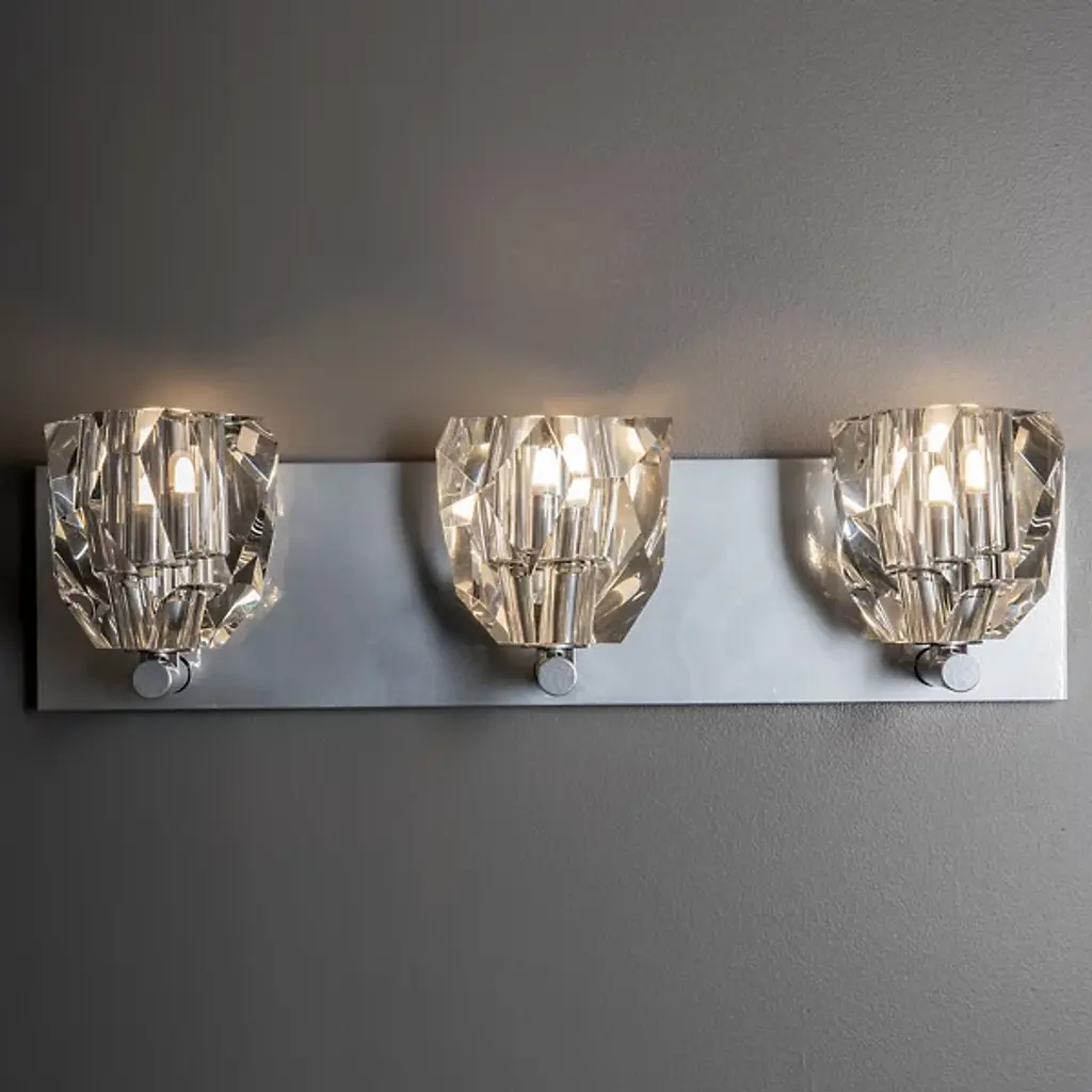 Sparkling lighting designed to set a luxurious mood in a bathroom. Given its literary design inspiration, the Gatsby Vanity Light by Hubbardton Forge has an appropriately opulent and artful effect. This is thanks primarily to its use of abstractly hand-cut crystals, framed against a sleek hand-forged steel wall plate. The crystal shades’ multi-faceted forms create unique plays of light across the wall, as well as produce ample useful ambience above a bathroom mirror or other vanity area.