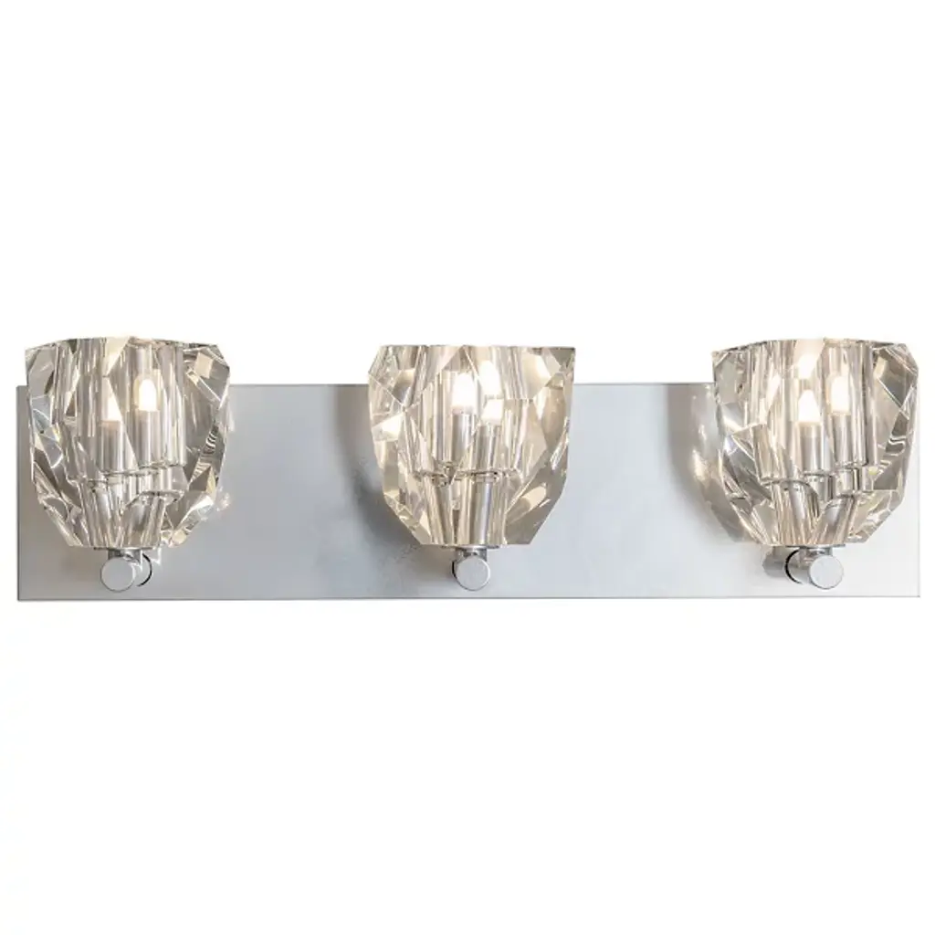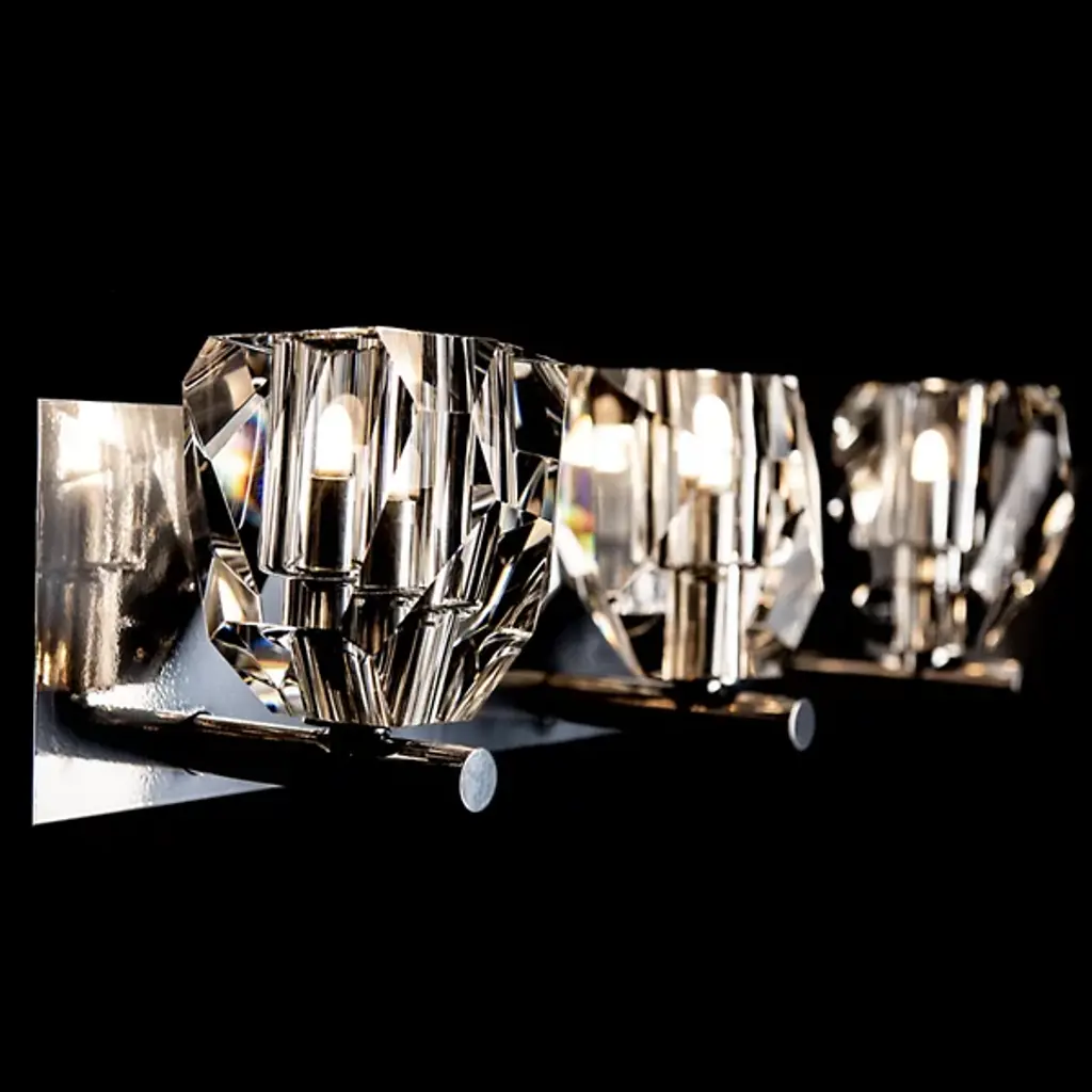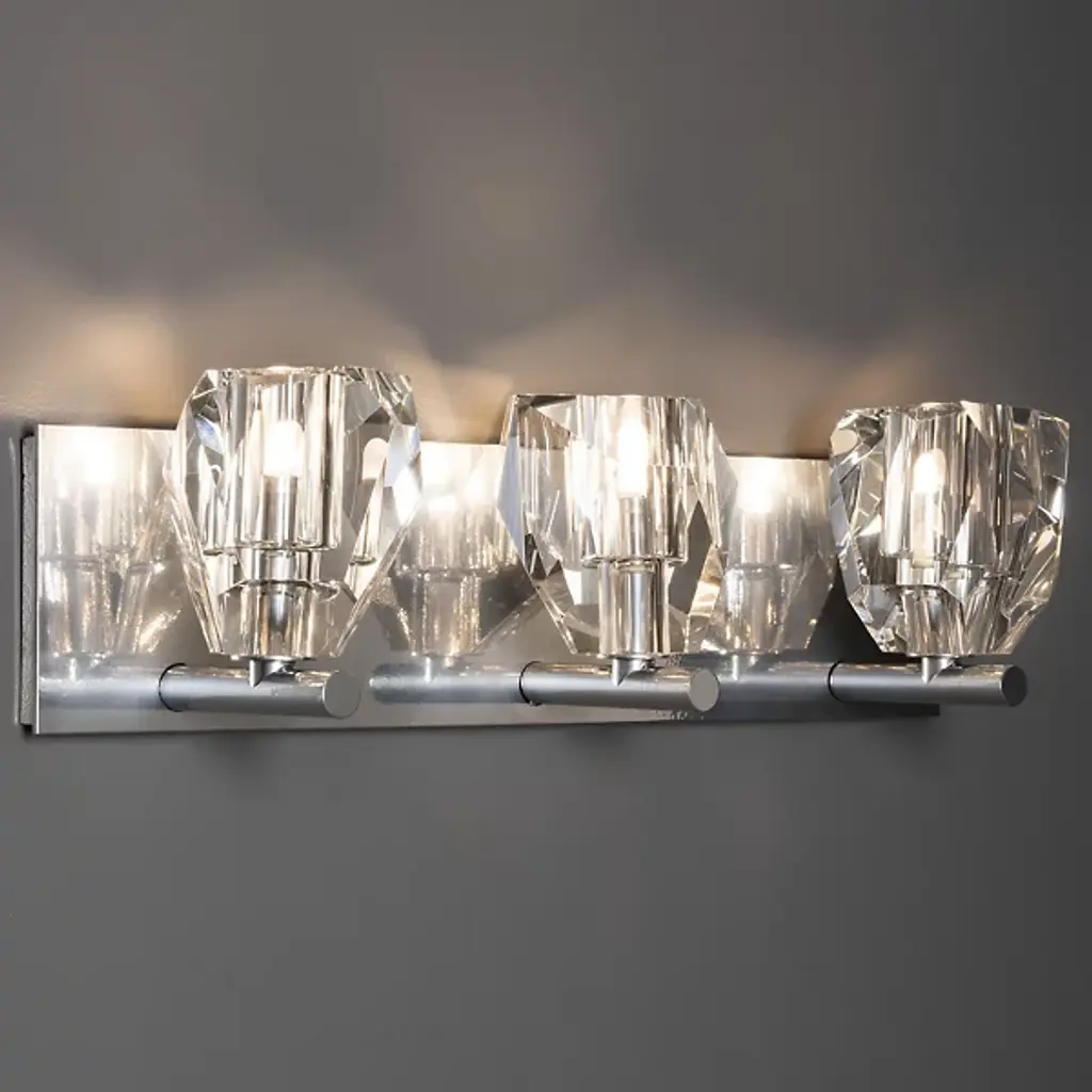 Sparkling lighting designed to set a luxurious mood in a bathroom. Given its literary design inspiration, the Gatsby Vanity Light by Hubbardton Forge has an appropriately opulent and artful effect. This is thanks primarily to its use of abstractly hand-cut crystals, framed against a sleek hand-forged steel wall plate. The crystal shades’ multi-faceted forms create unique plays of light across the wall, as well as produce ample useful ambience above a bathroom mirror or other vanity area.