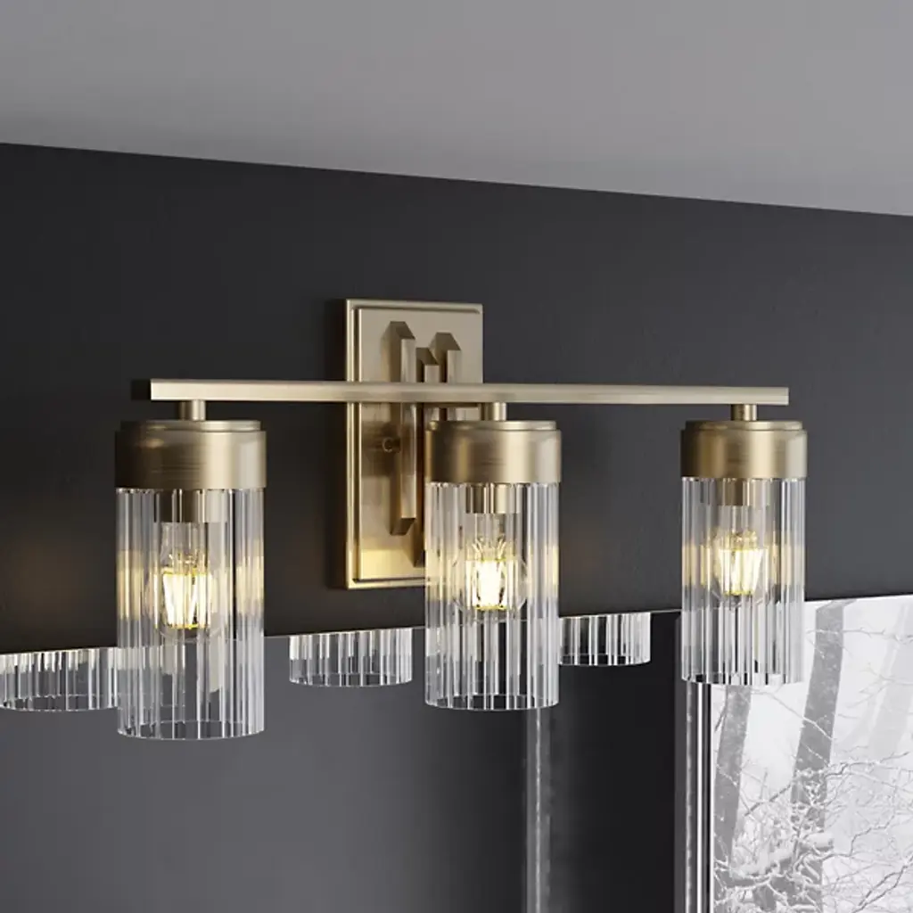 The Gatz Vanity Light from Hunter Fans is a fusion of mid-century modern elegance and contemporary design. The fixture features a refined arrangement of ribbed glass shades, each delicately held in place by the fixture’s streamlined metal framework. Suited to your vanity area, this piece is designed to provide optimal illumination for your daily routines. Gatz is a practical addition to your bathroom or dressing area. You can adjust the brightness level of the LEDs using a separately sold ELV dimmer.