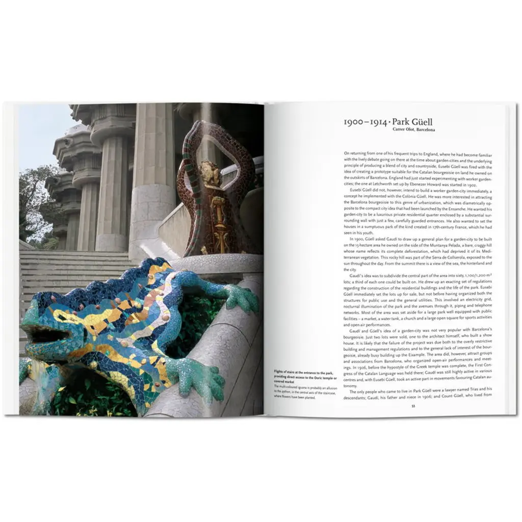 Published by Taschen, Gaudí provides a compact insight into the career of the Spanish architect Antoni Gaudí (1852–1926). Gaudí's works, such as Sagrada Família, Casa Batlló and Park Güell, define Barcelona’s cityscape and keep inspiring architects around the world. Written by Maria Antonietta Crippa, professor of History of Architecture, the book is part of Taschen's Basic Architecture series that presents life and work of internationally renowned architects with approximately 120 photographs, sketches and drafts. The series has been edited by German art historian Peter Gössel. Window frames curve like flowering branches and ceramic tiling shimmers like reptilian skin in the fervent architectural imagination of Antoni Gaudí. This introduction to the modernist Catalan architect explores how his outstanding attention to natural detail and unique vision transformed Barcelona’s cityscape with extraordinary buildings that continue to amaze, even a century after their construction.