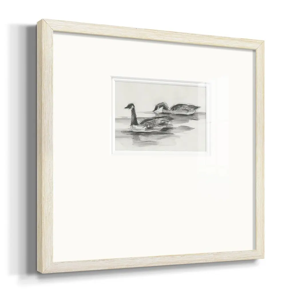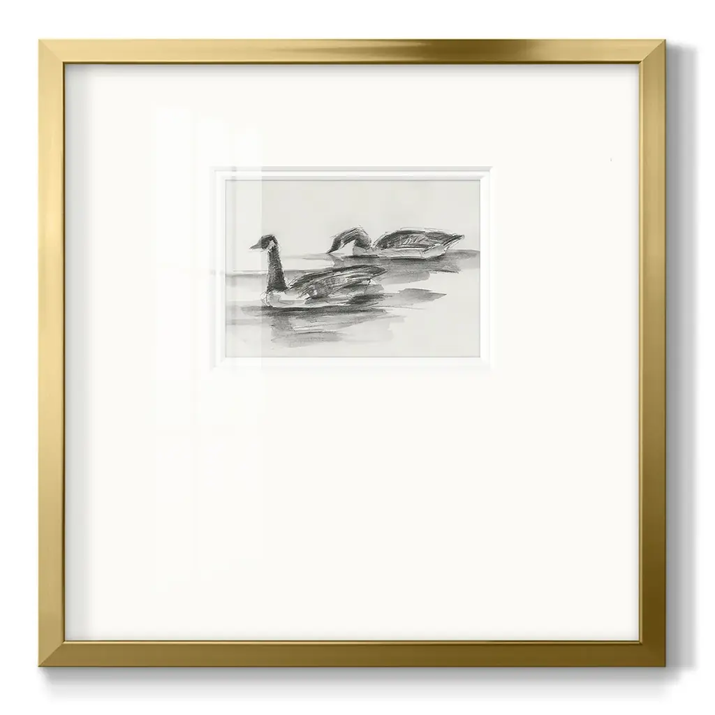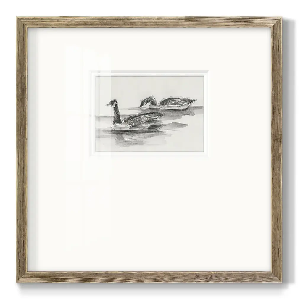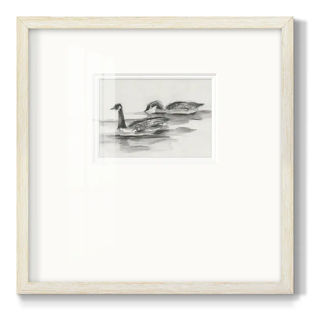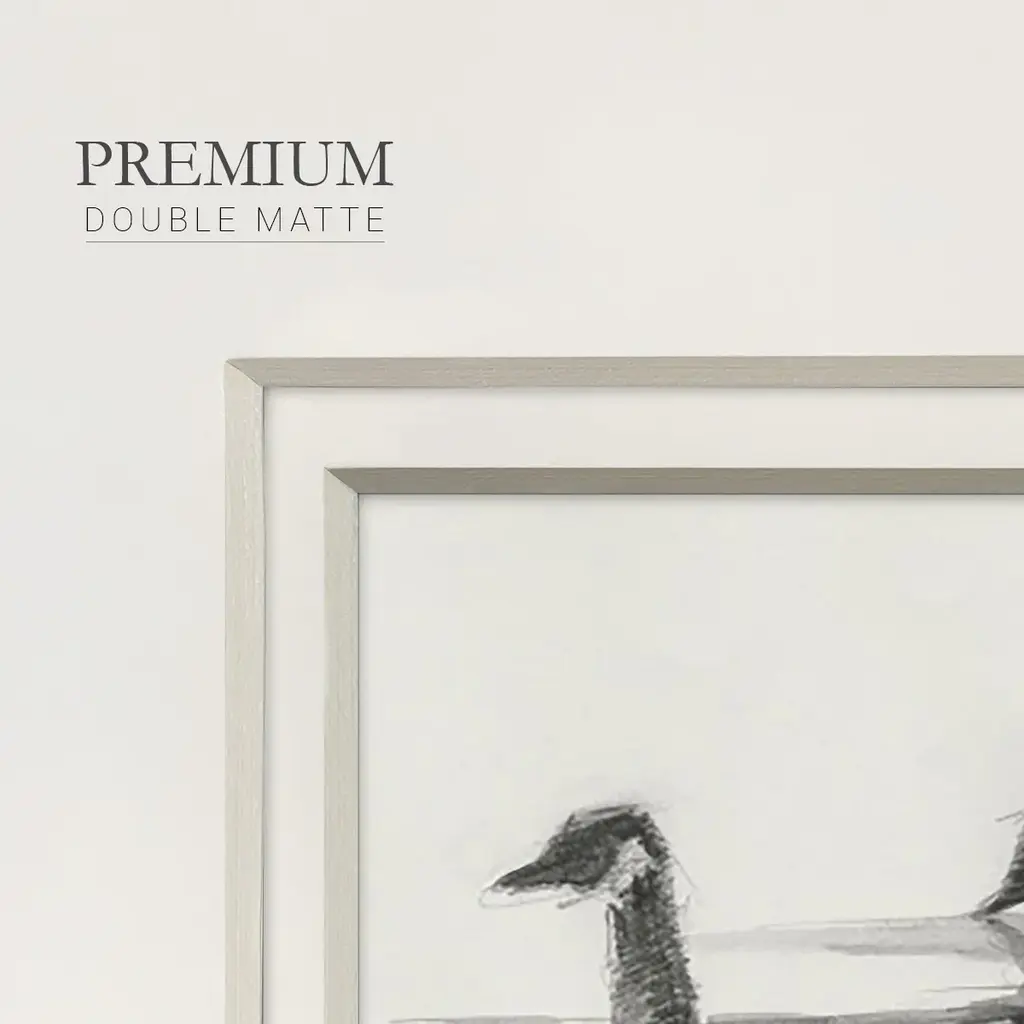 Geese Study IIPremium Framed Print A framed cold pressed paper print featuring superior double matting and quality frame. 2 SIZES AVAILABLE 16''X16''' - Overall Size 20''X20''' - Overall Size Each piece is made to order. Each piece comes with hanging hardware. Made in the USA Ready to Hang Giclee Paper Print Plexiglass Beveled Matt Board Double Matte Board