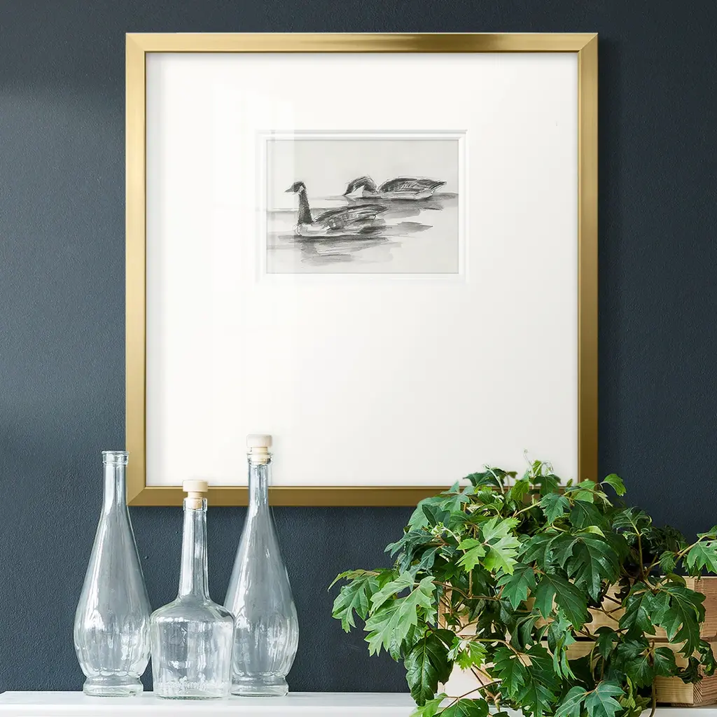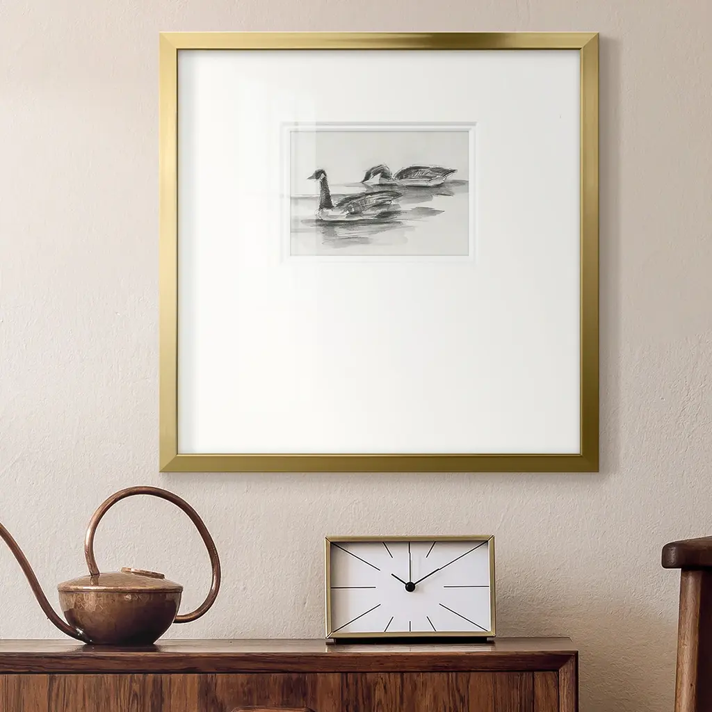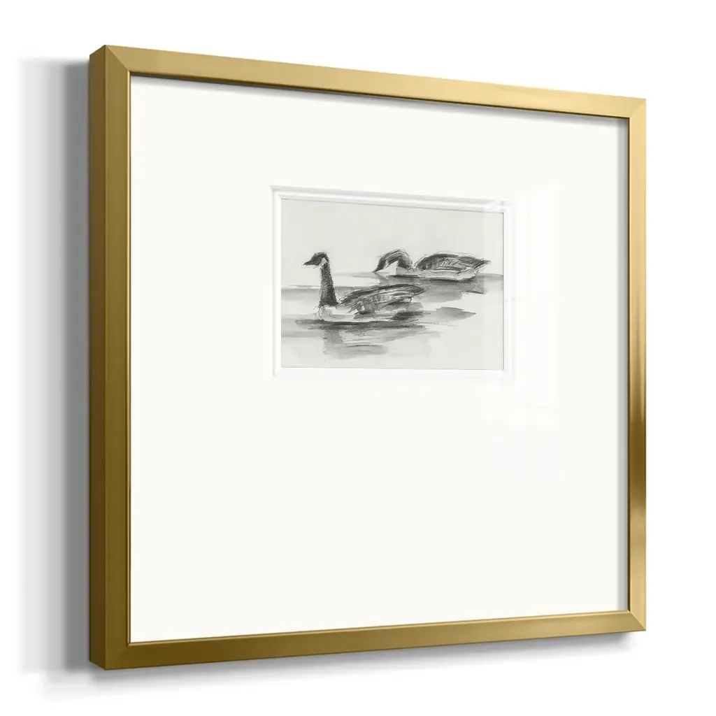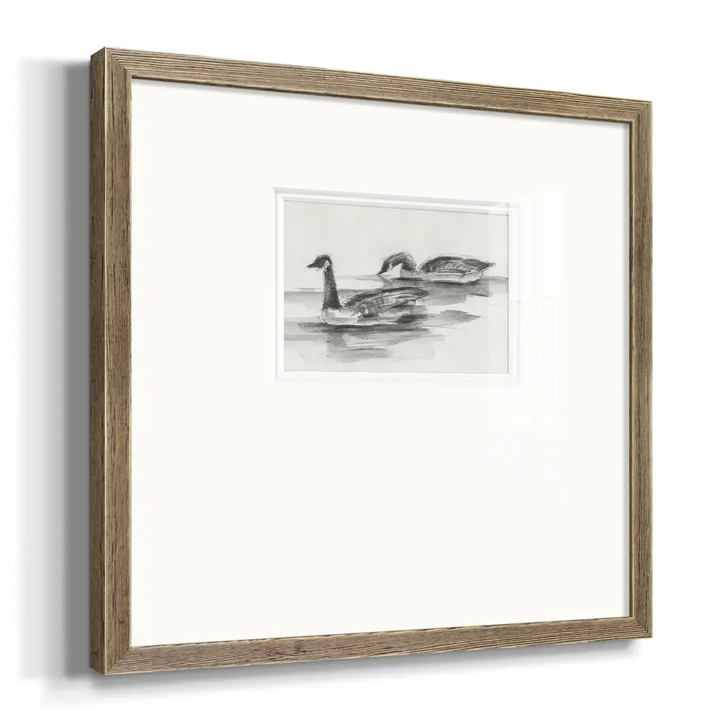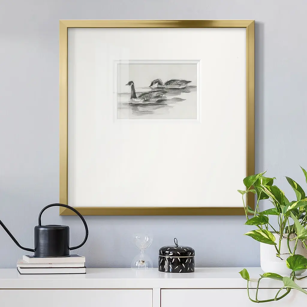 Geese Study IIPremium Framed Print A framed cold pressed paper print featuring superior double matting and quality frame. 2 SIZES AVAILABLE 16''X16''' - Overall Size 20''X20''' - Overall Size Each piece is made to order. Each piece comes with hanging hardware. Made in the USA Ready to Hang Giclee Paper Print Plexiglass Beveled Matt Board Double Matte Board