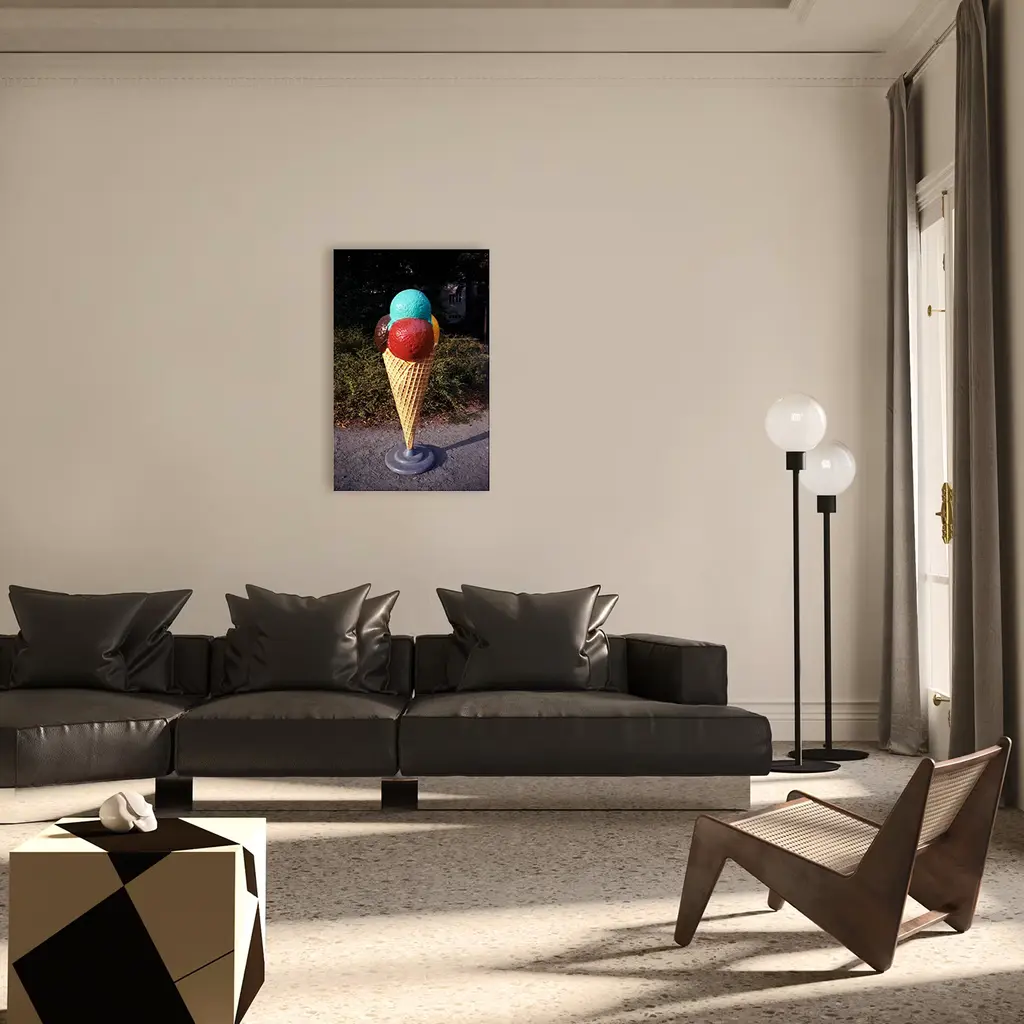A giant ice-cream cone crafted of resin Claudia Ferri came across and photographed when strolling in a park in Berlin (2018) is the playful subject of this top-quality C-type print. Printed on Fujicolor Crystal Archive Professional Paper – Maxima, the image gets printed through a fully analogical process carried out by a pressman under the artist's supervision. This is a limited edition of n. 5. Frame not included.