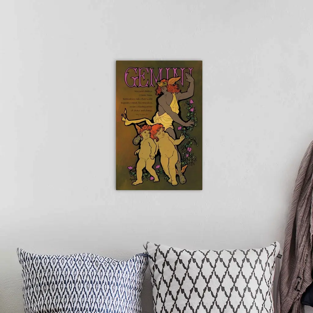 Artwork and Poetry Focusing on the mythology of each sign, alluding to the astrological traits, with references to the genesis of the individual constellations and the machinations of the ancient gods. "Mercurial children, Cosmic twins. Ambivalence rules their world. Inquisitive minds, faceting ideas, create a dazzling prism of choice and change." Gemini, May 21 - June 20.