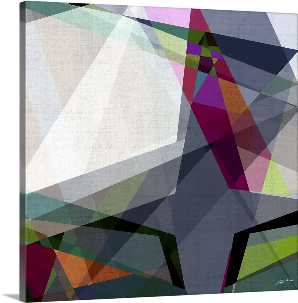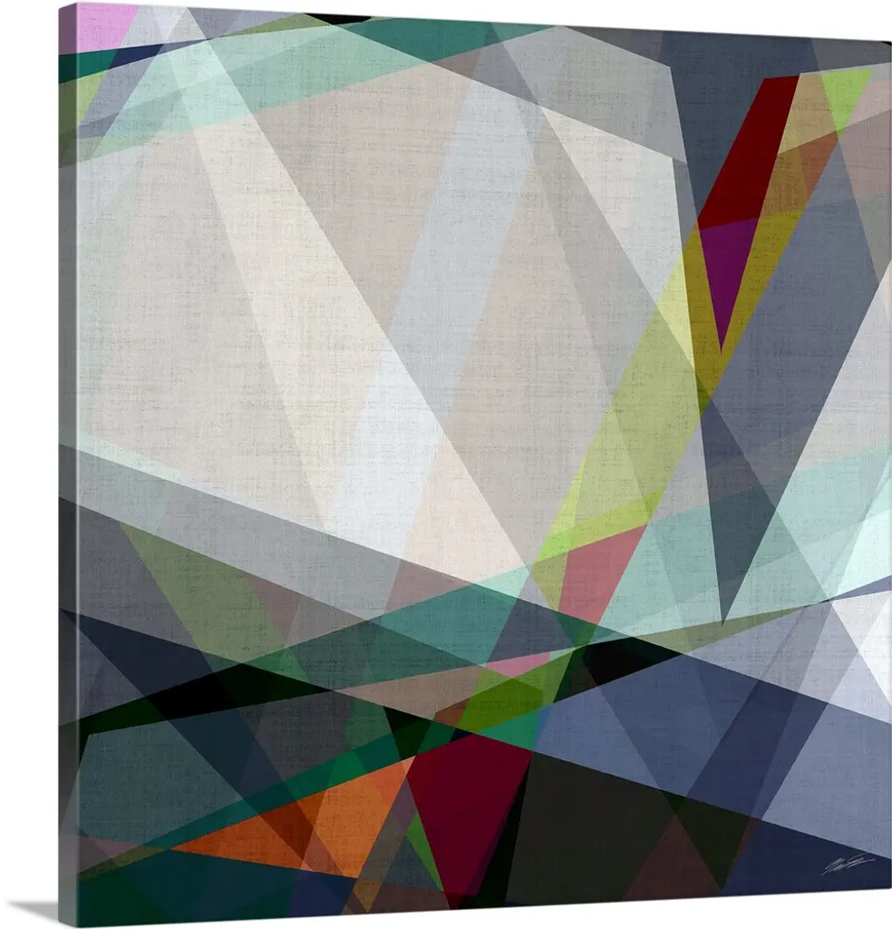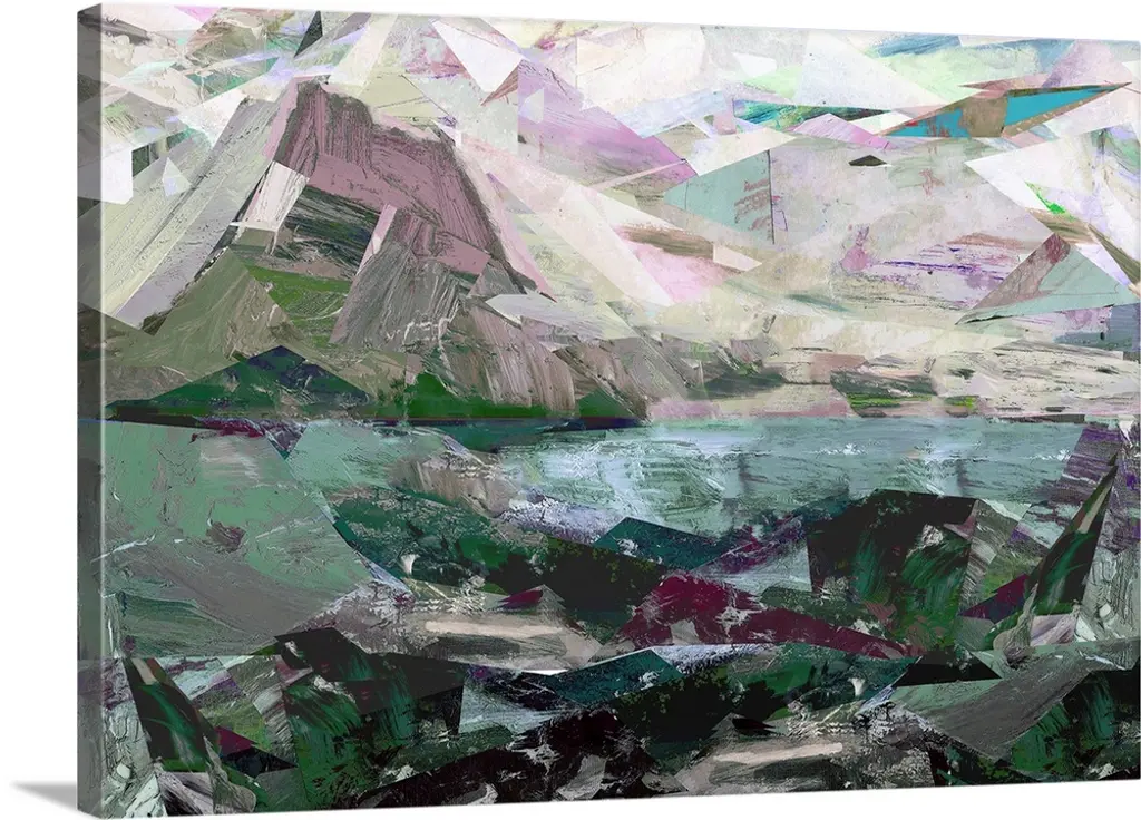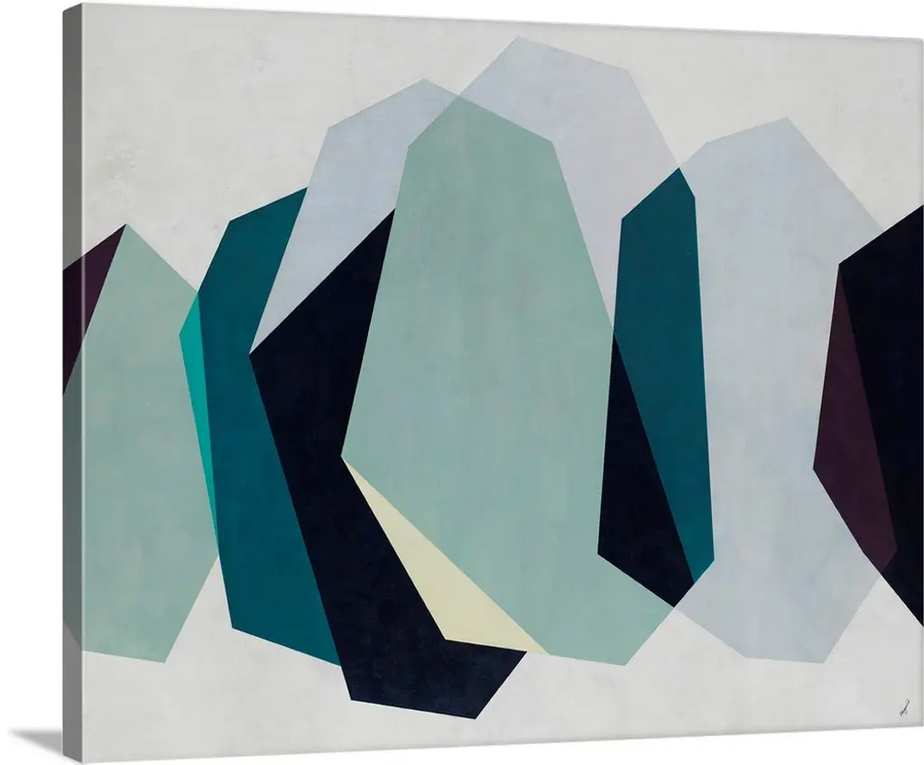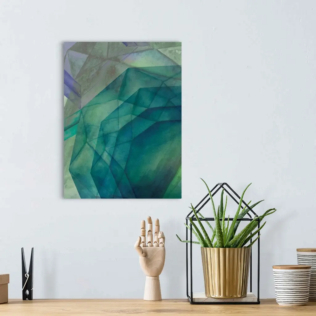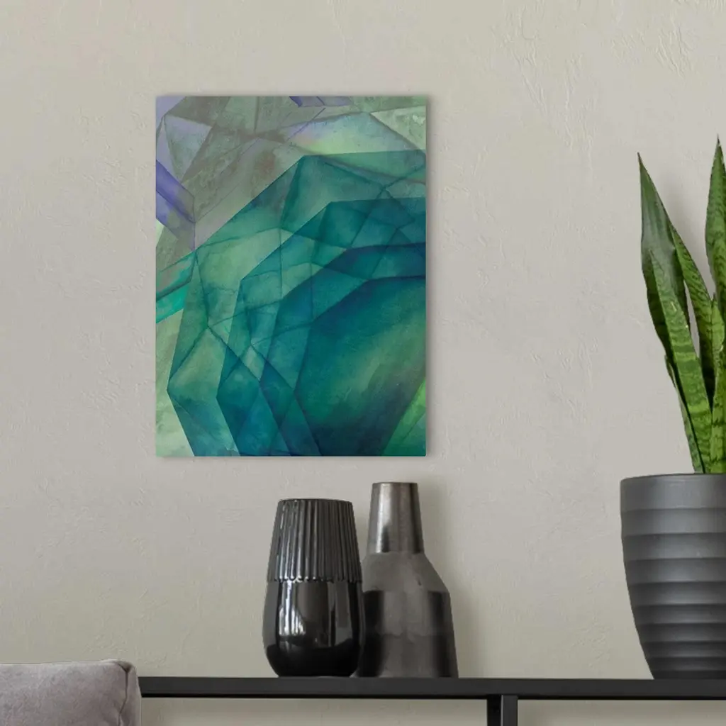 Contemporary home decor artwork of geometric shapes in green sea-like tones.