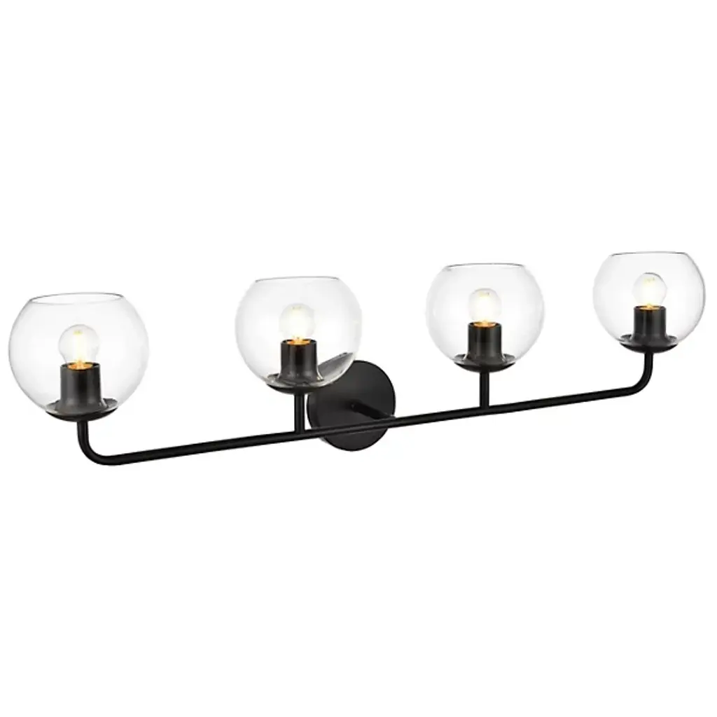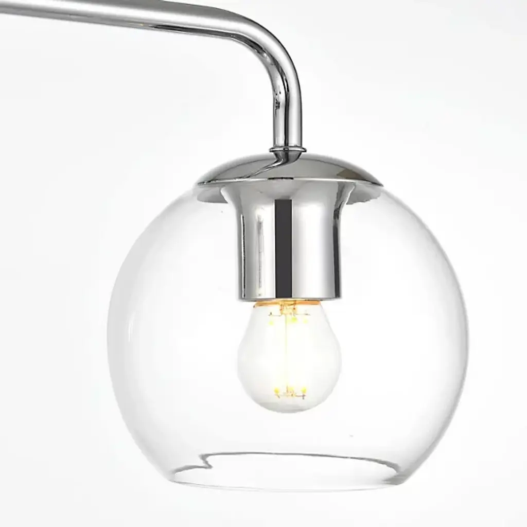 The Genesis Vanity Light from Elegant Lighting brings a fresh twist to bathroom illumination. This multi-globe fixture balances on a sleek bar, creating a modern interpretation of classic vanity lighting. The clear glass orbs house exposed bulbs, offering unobstructed illumination perfect for grooming tasks. This dimmable bathroom light allows you to transition from bright, functional light to a softer glow for relaxation. The iron construction ensures durability, while the minimalist design complements various decor styles.