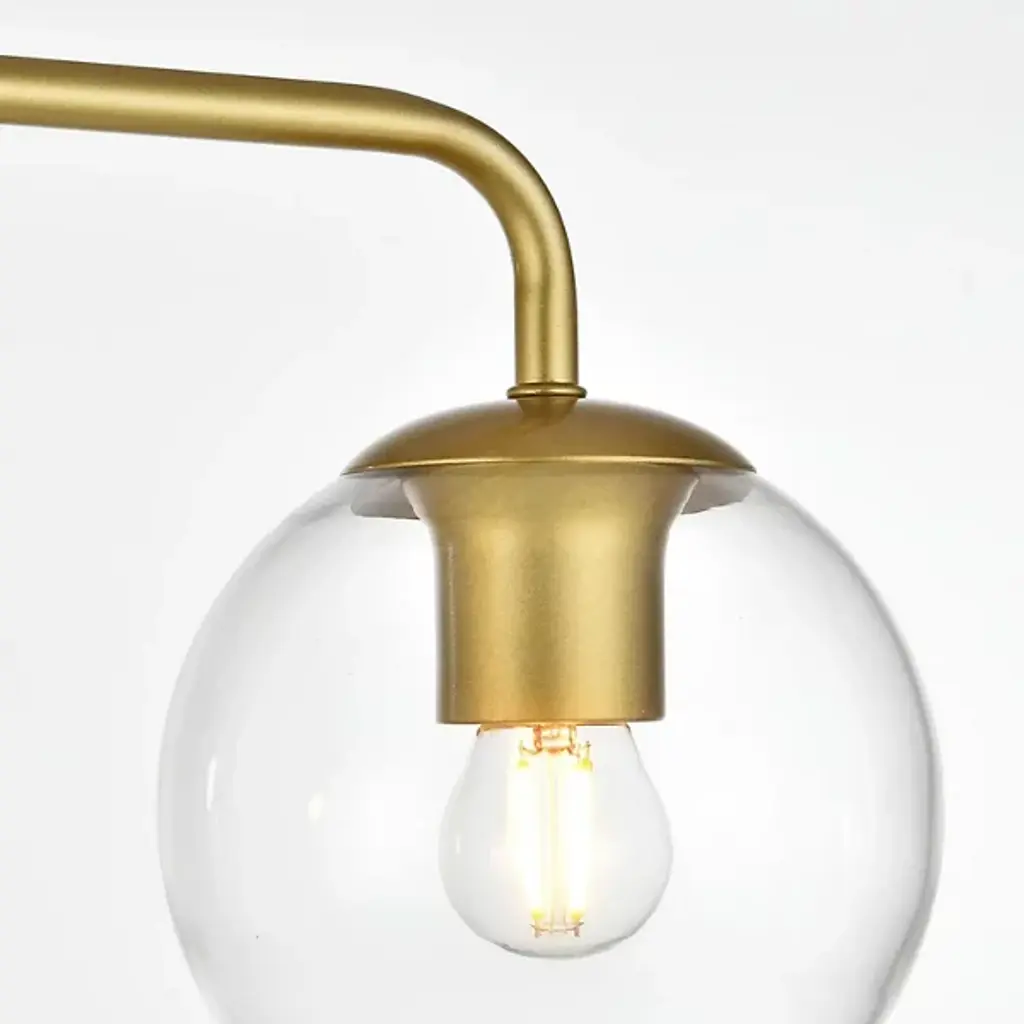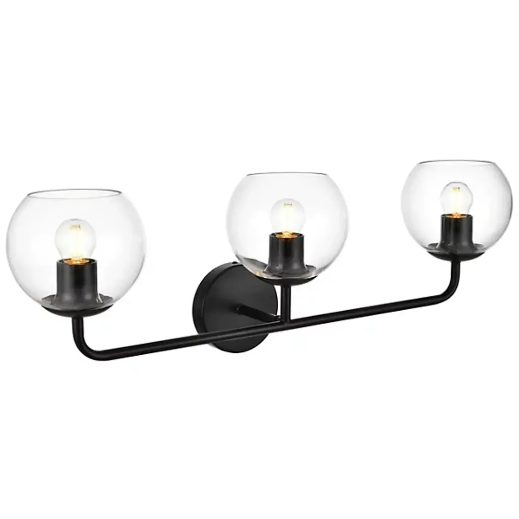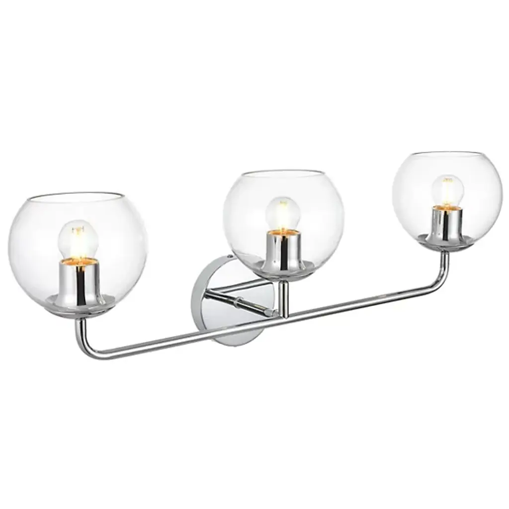The Genesis Vanity Light from Elegant Lighting brings a fresh twist to bathroom illumination. This multi-globe fixture balances on a sleek bar, creating a modern interpretation of classic vanity lighting. The clear glass orbs house exposed bulbs, offering unobstructed illumination perfect for grooming tasks. This dimmable bathroom light allows you to transition from bright, functional light to a softer glow for relaxation. The iron construction ensures durability, while the minimalist design complements various decor styles.