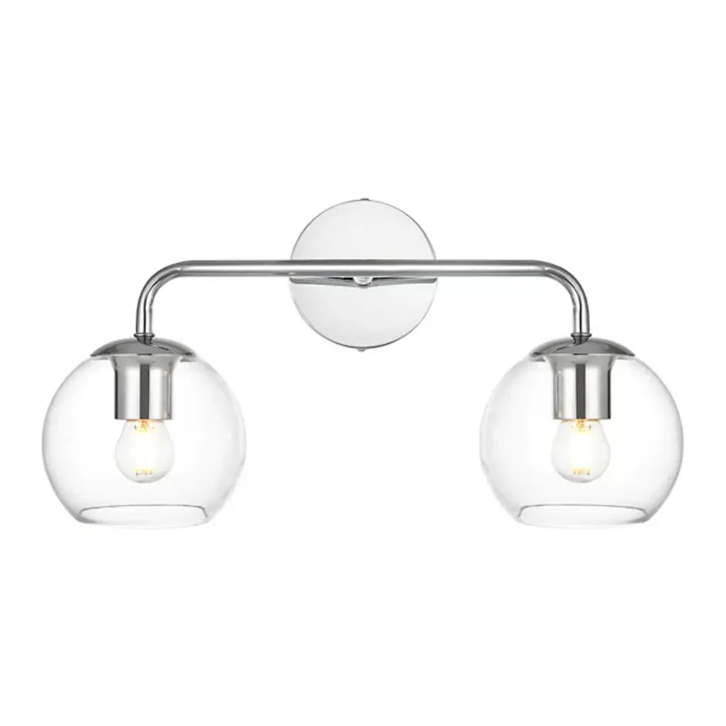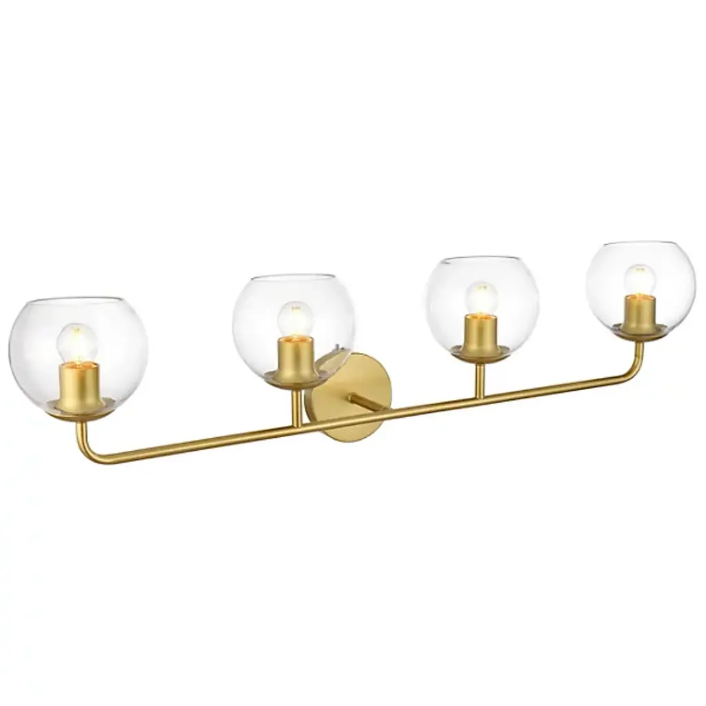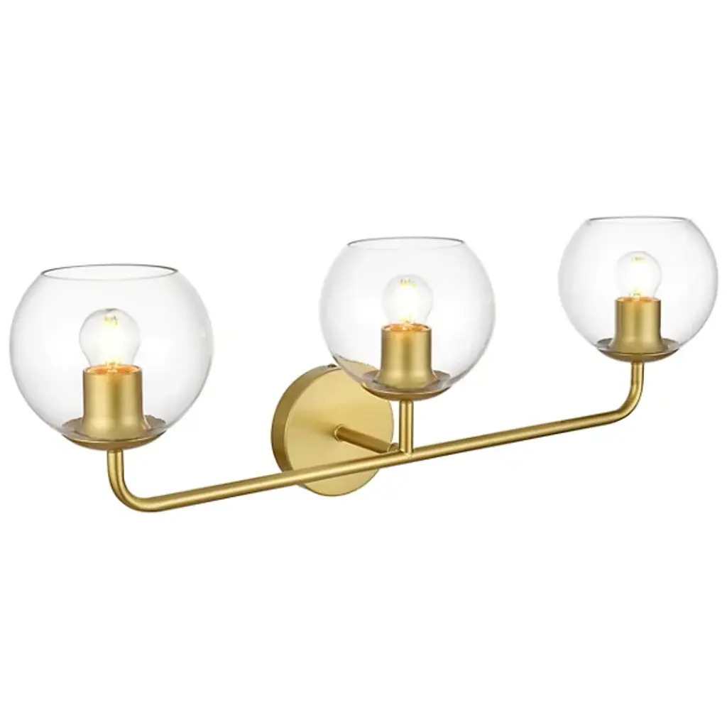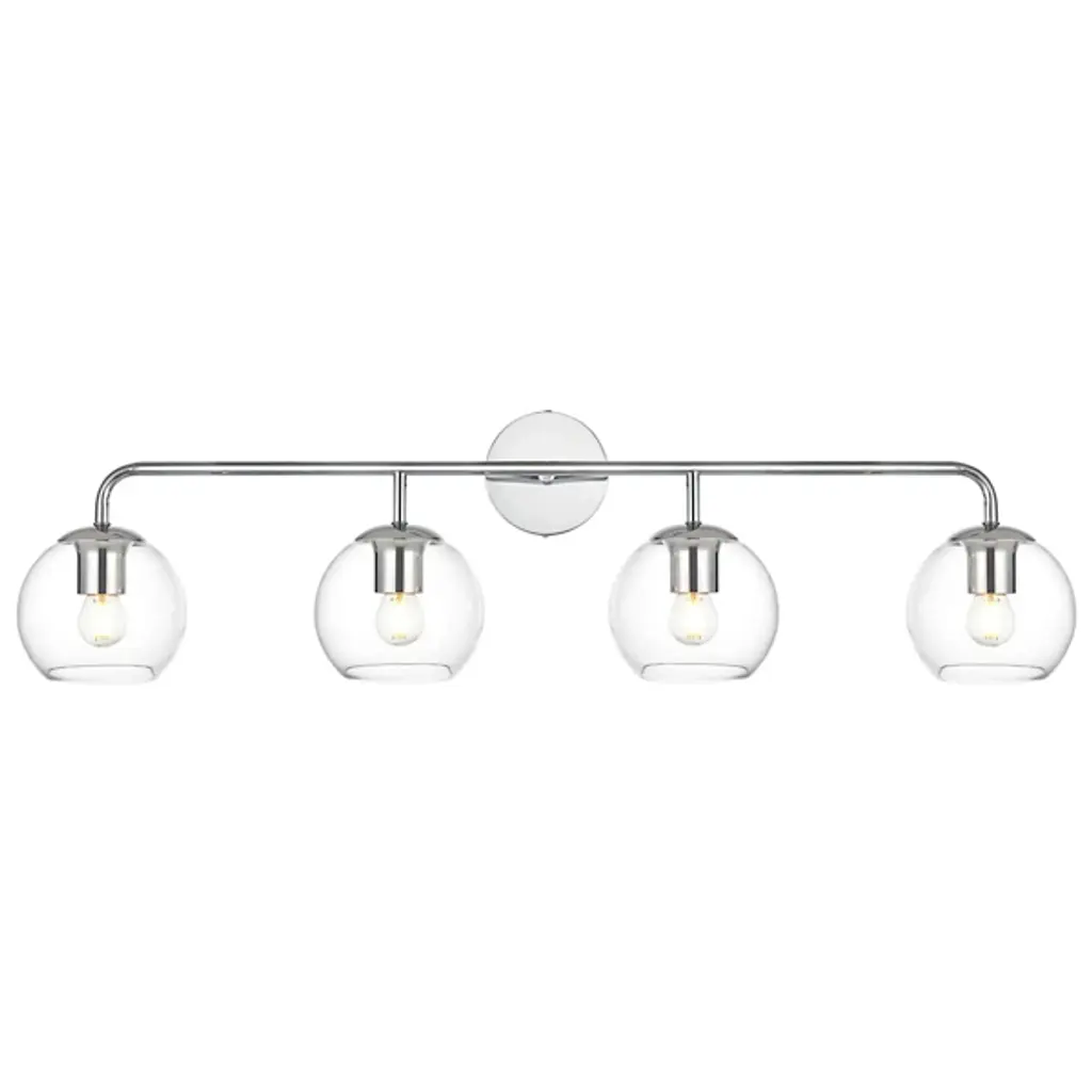 The Genesis Vanity Light from Elegant Lighting brings a fresh twist to bathroom illumination. This multi-globe fixture balances on a sleek bar, creating a modern interpretation of classic vanity lighting. The clear glass orbs house exposed bulbs, offering unobstructed illumination perfect for grooming tasks. This dimmable bathroom light allows you to transition from bright, functional light to a softer glow for relaxation. The iron construction ensures durability, while the minimalist design complements various decor styles.