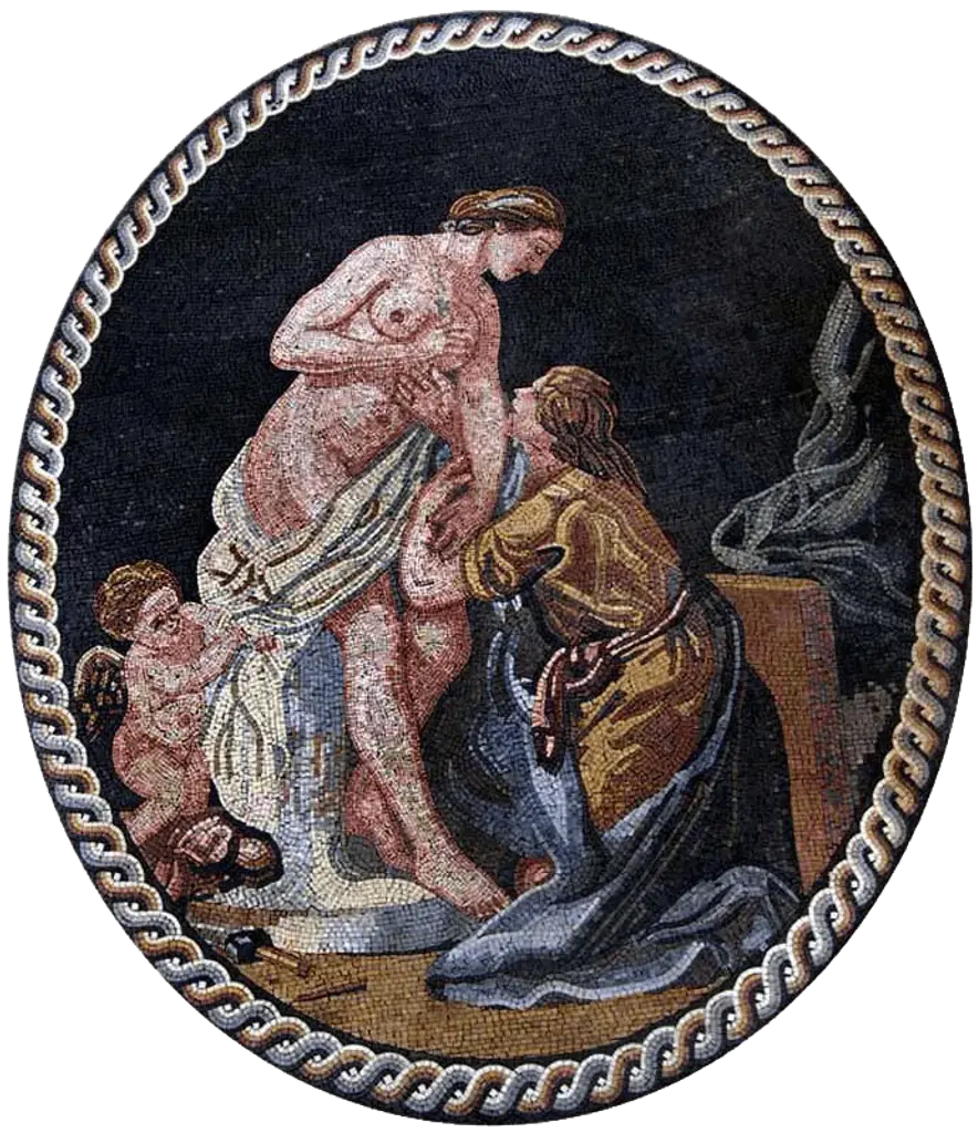Experience the captivating beauty of our "Geometric Ancient Mosaics," a stunning work of art that combines traditional craftsmanship with timeless elegance. This exquisite black and beige hand-made marble mosaic is meticulously crafted from all-natural stones and hand-cut art tiles, showcasing the incredible talent of our skilled artisans. At the heart of this unique piece is a striking depiction of an ancient warrior in a poised, crouching position, representing strength, bravery, and the essence of battle. Every detail of this mosaic is thoughtfully designed to evoke a sense of history and storytelling, making it a perfect conversation starter and focal point for any space. Whether displayed in your living room, office, or art gallery, the Geometric Ancient Mosaics will infuse your environment with a touch of sophistication and a connection to the past. Its neutral color palette of black and beige allows it to seamlessly blend with various decor styles, from modern minimalism to classic elegance.This remarkable stone art piece not only serves as an aesthetic enhancement but also carries a deeper significance, reminding us of the valorous spirits of ancient times. It is an ideal addition to any art collection or a thoughtful gift for history enthusiasts and art lovers alike.Indulge in the artistic heritage of ancient mosaics and elevate your space with the Geometric Ancient Mosaics. Each mosaic is not just a decoration; it's a narrative, a legacy, a reflection of artistry that stands the test of time. Add this beautiful piece of stone art to your cart today and bring home a slice of history.