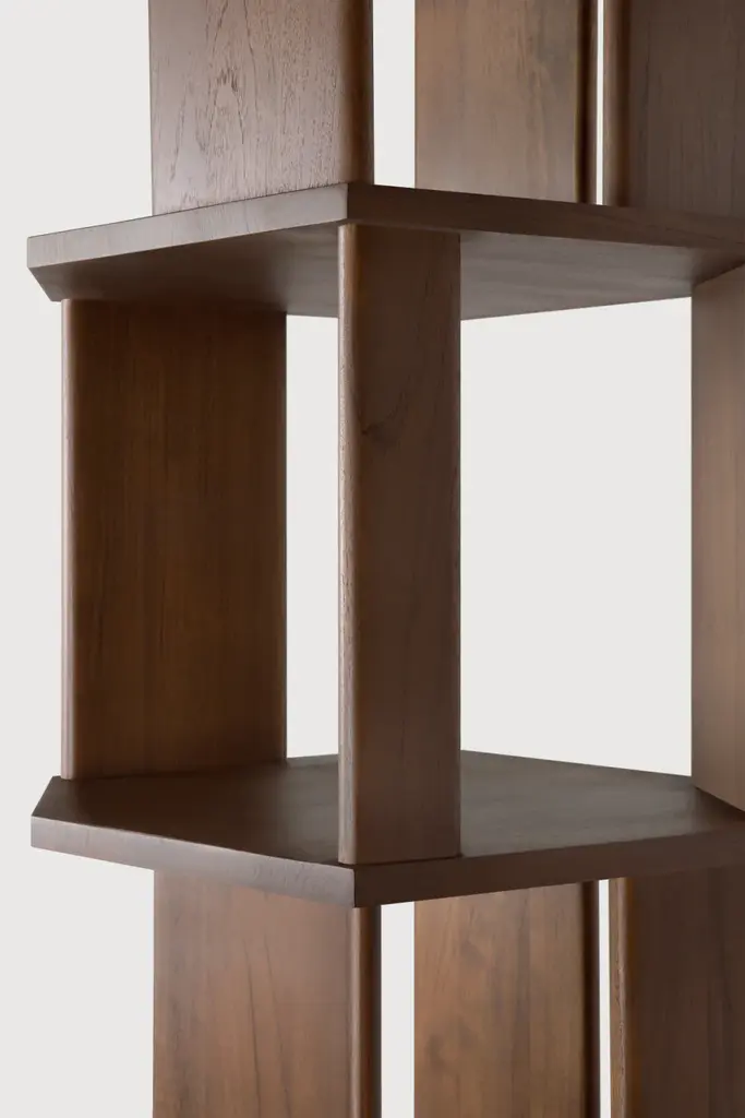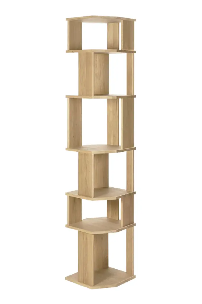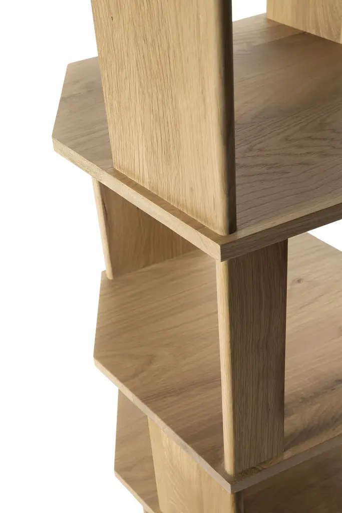 The Geometric Oak Bookcase by Ethnicraft redefines conventional design with its captivating angular compositions. With its multi-faceted design, the Stairs bookcase provides ample shelving to display books, art pieces, collectibles, and decorative items. Placing it near a window or a well-positioned light source enhances its three-dimensional appeal, creating a mesmerizing visual effect. Its versatility and striking aesthetics make it an essential piece that effortlessly enriches any interior design.