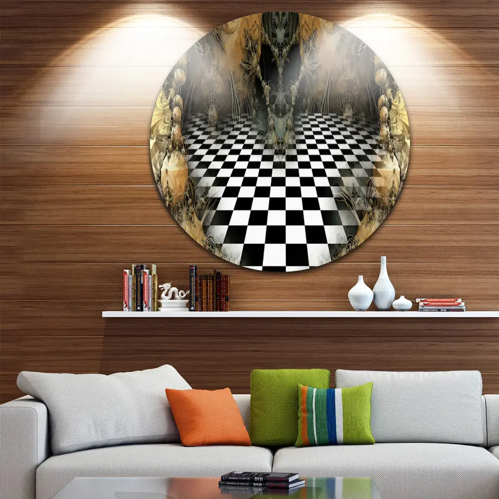 Bring Contemporary Abstraction to your home with this large Circle Metal wall art. This Geometric Composition Wide View Metal Artwork makes it the focal point of any room or office. - White Gloss Coating ensures colors are extra vibrant with light reflection.- Aluminum grade Sheet Metal with 1 inch mounting frame on the back giving the illusion that the artwork is floating on the wall..- Mounting Brackets are included along with instructions.- High Quality Digital images are created directly into a glossy aluminum panel producing a stunning and captivating print into the glossy finish of the metal.- Water, Fire and Scratch resistant HD Aluminum panels.- Looks better than any photo paper and guaranteed to last at least 20 years- Easy to clean with a microfiber cloth. Colors are far superior to regular Canvas Art. - Easy to Hang