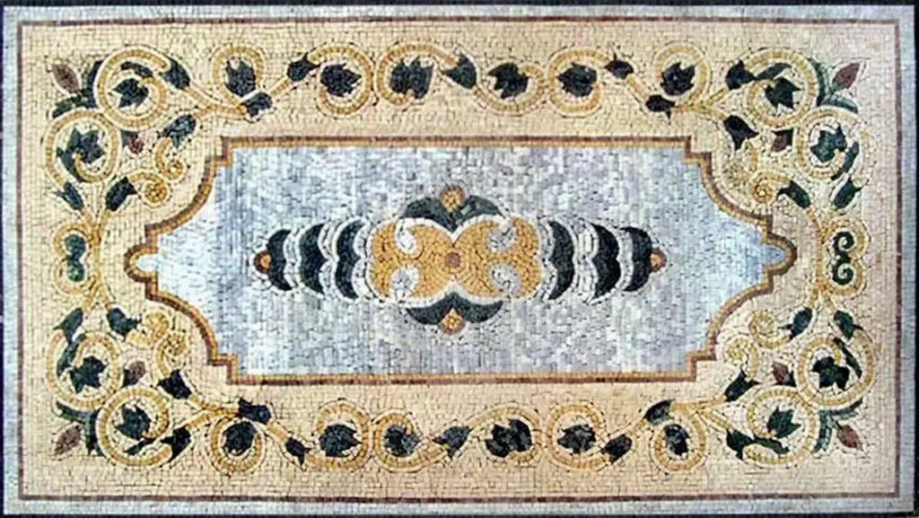 Transform your space with our stunning Geometric Mosaic Design Artwork Inlay. This exquisite piece of art is carefully handcrafted using all-natural marble, ensuring that each mosaic is unique and meticulously designed. The geometric patterns create a visually striking display that not only enhances your decor but also adds a touch of elegance and sophistication to any room.Measuring in a versatile rectangular shape, this artwork can be seamlessly integrated into various settings, whether it's your living room, hallway, or even a stylish office space. The combination of high-quality marble and the intricate geometric design results in a durable piece that is both functional and artistic. The Geometric Mosaic Design Artwork Inlay is more than just flooring; it’s a statement piece that reflects your personal style and appreciation for fine craftsmanship. Its timeless appeal and rich textures will captivate your guests and create a welcoming ambiance in your home or workspace.Elevate your interior design with this remarkable geometric mosaic that tells a story of art and culture. Let its beauty inspire you every day as you walk across this unique creation. Whether you are renovating your home or looking to add a conversation starter to your decor, the Geometric Mosaic Design Artwork Inlay is the perfect choice. Make your space truly yours with this striking fusion of art and architecture.