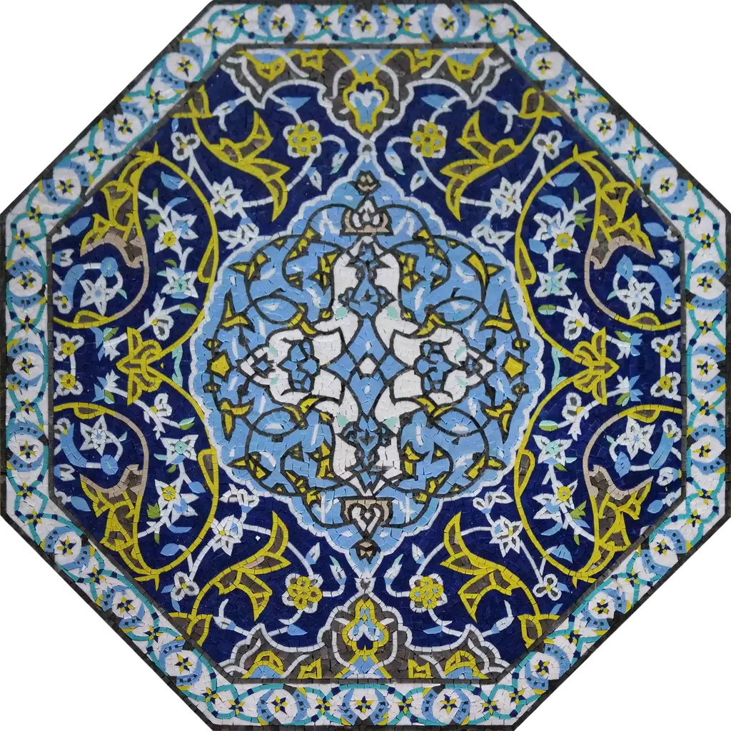 Introducing the Geometric Mosaic - Mosaic Artwork, a stunning piece that transforms any living space into a realm of beauty and elegance. This exquisite artwork showcases a harmonious blend of vibrant shades of blue and yellow, masterfully arranged to create a captivating geometric design. Each element of the mosaic is thoughtfully crafted, featuring a variety of shapes that evoke the delicate beauty of flowers, making it a perfect focal point for your home decor.What sets this Geometric Mosaic - Mosaic Artwork apart is its artisanal quality. Each piece is fully handmade from high-quality marble stones, ensuring that every mosaic is unique and infused with character. The intricate craftsmanship not only highlights the natural beauty of the materials but also adds a touch of sophistication to your surroundings.The versatility of the Geometric Mosaic - Mosaic Artwork allows it to fit seamlessly into any room. Whether displayed in your living room, dining area, or even a cozy corner of your home, this artwork is designed to spice up your decor and create an inviting atmosphere. Its striking colors and geometric patterns can complement various styles, from modern to traditional, making it an excellent addition to any aesthetic.Elevate your interior design with the Geometric Mosaic - Mosaic Artwork and enjoy the beauty of a handcrafted piece that reflects your personal style. Ideal as a gift for loved ones or as a special addition to your own collection, this mosaic artwork promises to captivate and inspire. Don’t miss the opportunity to bring this beautiful, one-of-a-kind piece into your home today!
