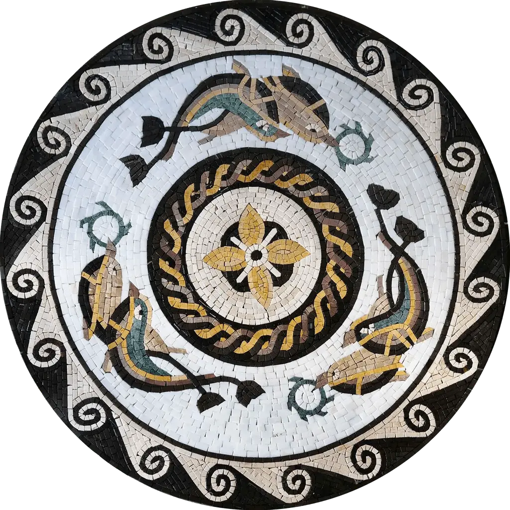 Introducing the Geometric Mosaic Square - Juliette II, a stunning piece that will captivate the hearts of mosaic art enthusiasts and transform any space into a contemporary masterpiece. This exquisite geometric mosaic square features a beautifully intricate design that showcases captivating swirls and elegant lilies. The harmonious blend of milky white, gold, taupe, and black hues creates a striking visual appeal, making it a perfect addition to both modern and classic interiors.Each Juliette II mosaic is lovingly handmade, ensuring that every piece is unique and crafted with care. The meticulous attention to detail in the artisanship brings an undeniable charm and sophistication to your home décor. Available in custom sizes, this mosaic square can be tailored to fit your specific needs, whether you're looking to enhance a small nook or create a breathtaking focal point in a larger area.Installation is made effortless with the included mesh backing, which allows for straightforward application and a secure fit. Simply peel and place, and watch as your space transforms into a vibrant canvas of art. The versatility of the Juliette II makes it suitable for a variety of applications, including accent walls, backsplashes, flooring, or even as standalone art pieces.Not only is the Geometric Mosaic Square - Juliette II a visual delight, but it also serves as a testament to the timeless beauty of mosaic art. Its contemporary design and color palette allow it to seamlessly integrate into diverse design themes, from minimalist to eclectic. Each mosaic becomes a conversation starter, inviting admiration and appreciation for the craftsmanship behind it.Elevate your interior spaces and embrace the beauty of handmade artistry with the Geometric Mosaic Square - Juliette II. Whether you are a mosaic enthusiast or a design aficionado, this piece promises to add a touch of elegance and creativity to your home. Discover the joy of artistic expression and transform your environment with this stunning mosaic square today!