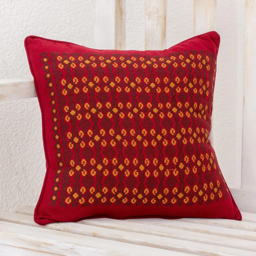 Trojan is inspired by the ancient city of Troy. A rich textile design with a geometric pattern and highlighted stitch effect, available in rich spice colors, fresh white with denim blues and grays.All cushions are piped in our rich and luxurious Firepit Outdoor Velvet and stuffed with hollow fiber pads. We recommend that cushions are looked after carefully and are best used in dry weather. Our outdoor cushions have a showerproof finish but as with all outdoor textiles, they prefer to be stored inside when they are not being used, or during periods of wet, cold or damp weather. - Orange, Brown, Blue