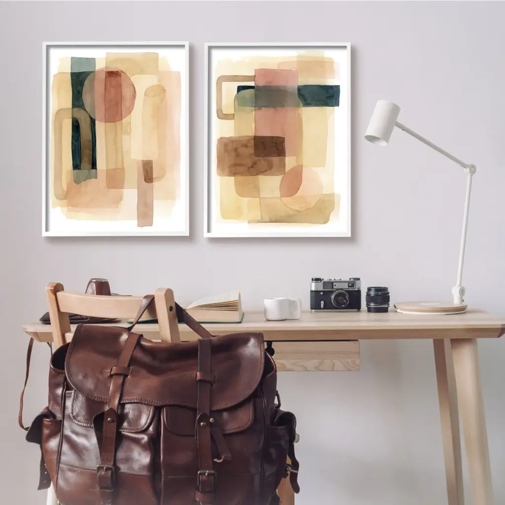 Geometric Shapes Abstract Transparent Clustered Forms Overlapped, 2Pc, 24 X 30