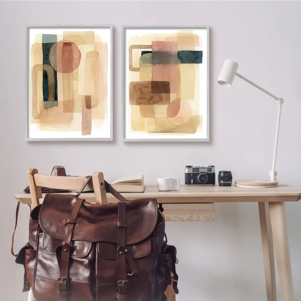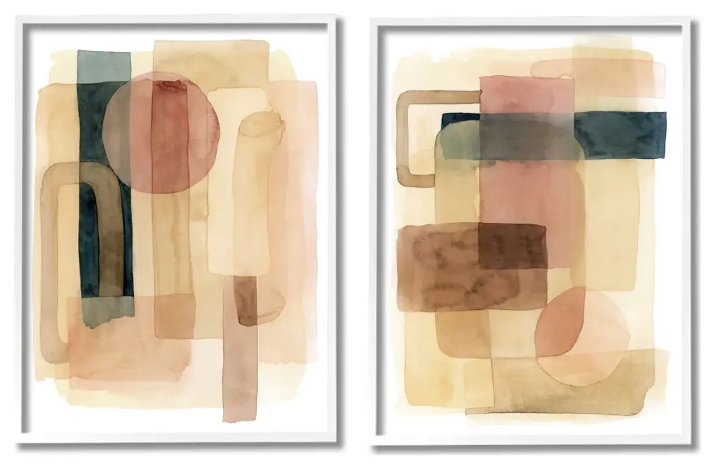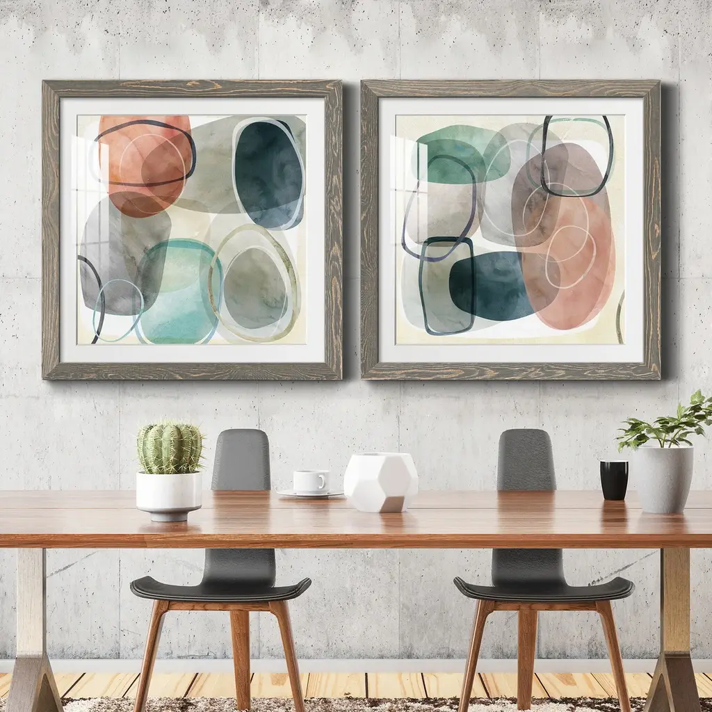 Geometric Shapes Abstract Transparent Clustered Forms Overlapped, 2Pc, 24 X 30