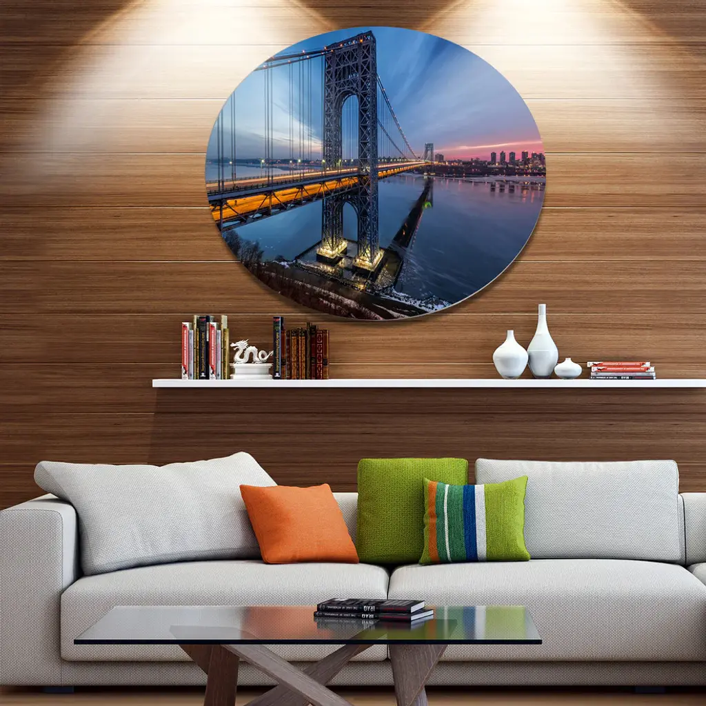 George Washington Bridge, Cityscape Art Round Metal Wall Art, 38"