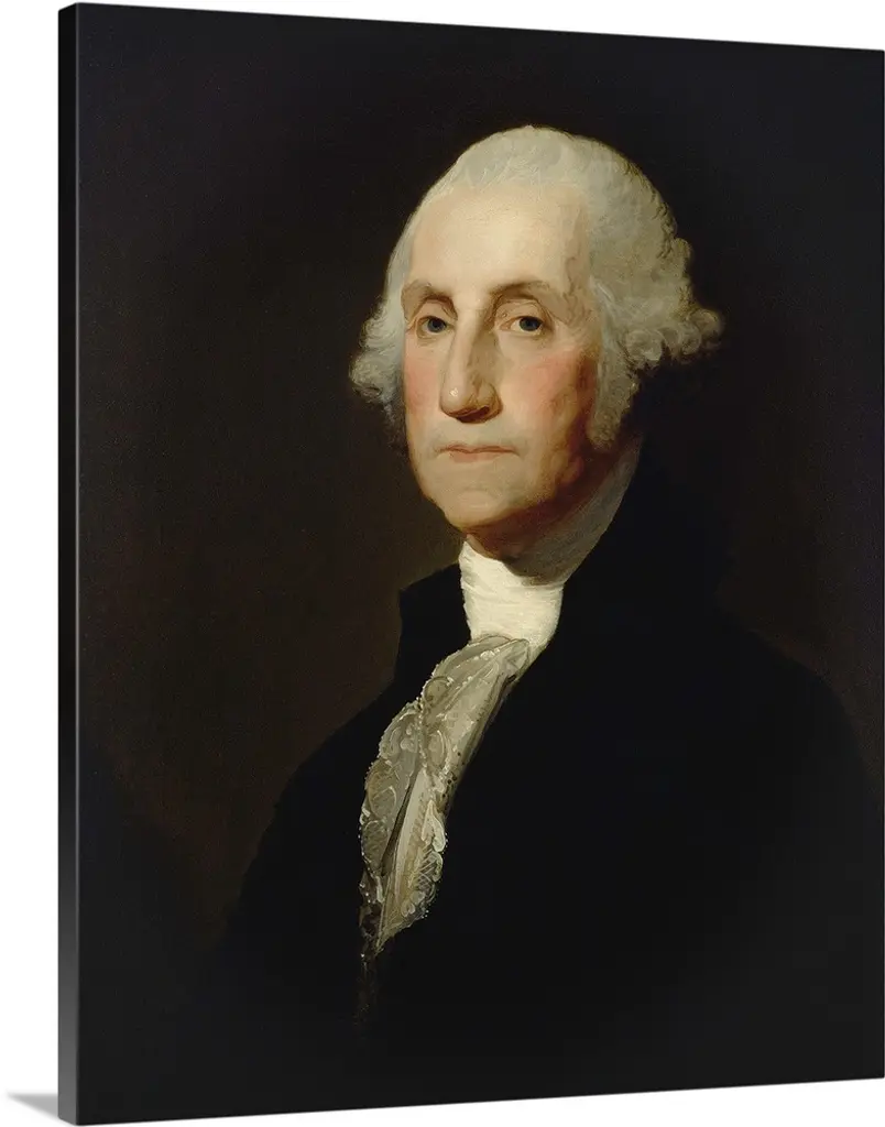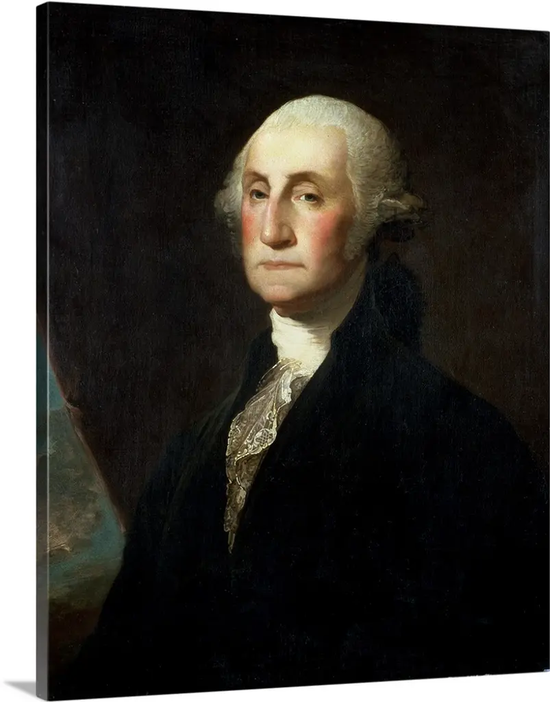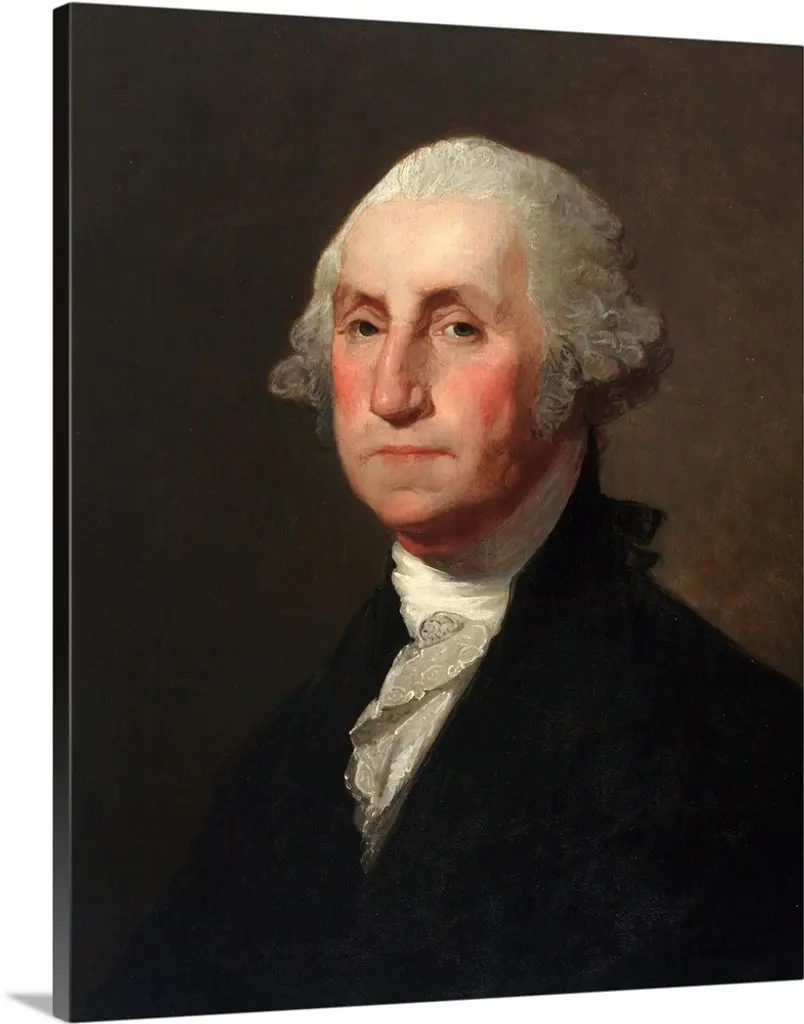 George Washington, by Gilbert Stuart (Vaughan-Sinclair portrait), 1795, American painting, oil on canvas. This is one of the 130 known portraits of Washington by portraitist Gilbert Stuart