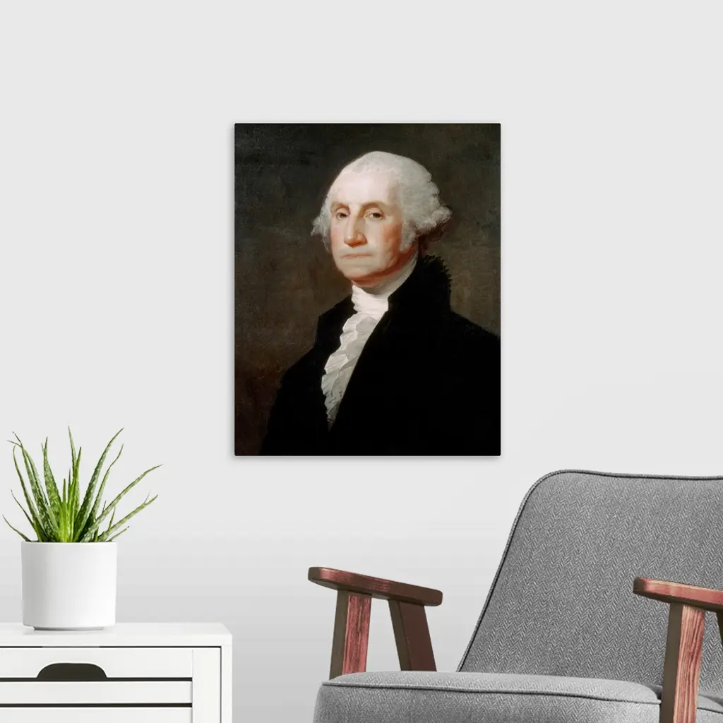 Stuart's most popular portraits of Washington are the so-called Athenaeum type, of which there are as many as sixty replicas dating from the turn of the nineteenth century until the artist's death. Often disparagingly referred to as his hundred-dollar bills--after the price of each painting--the striking portraits not only provided an income for Stuart but also made him a major player in the development of Washington as a cultural icon, as the works sold far and wide.