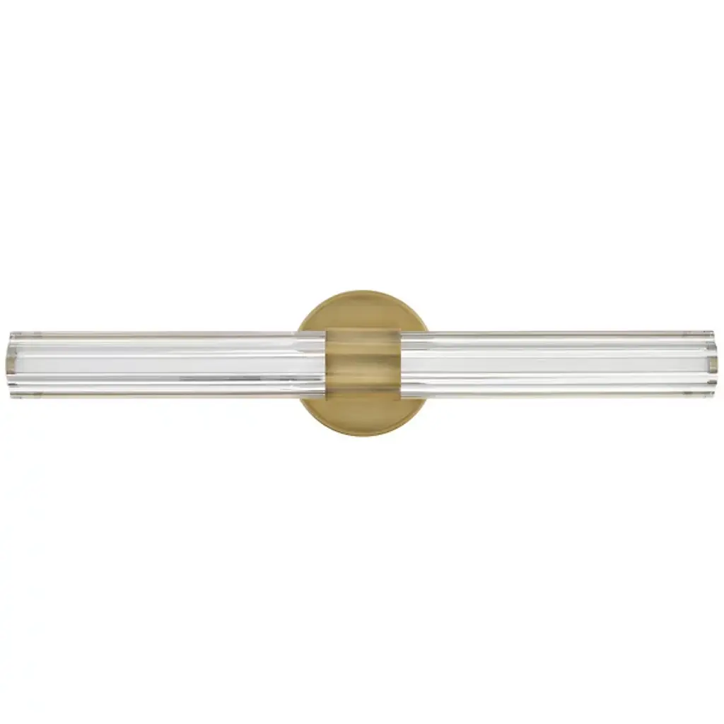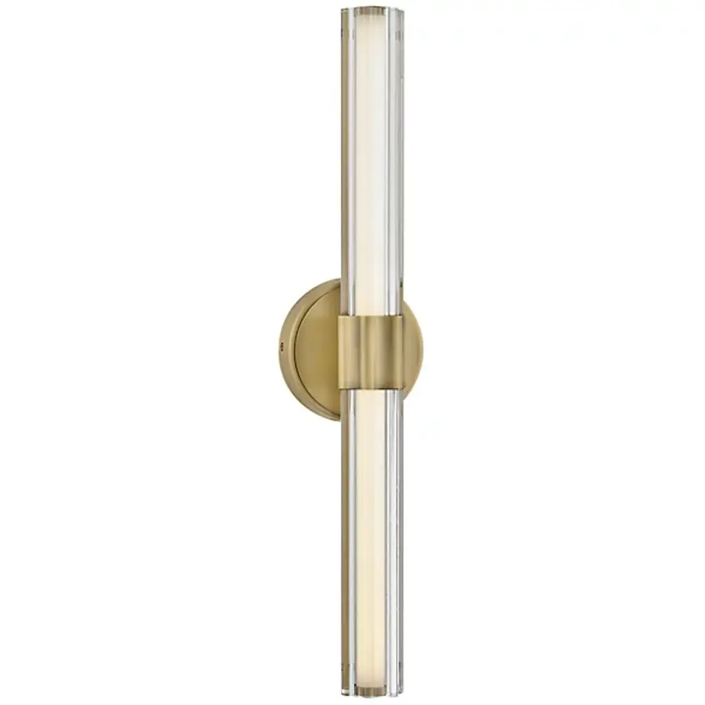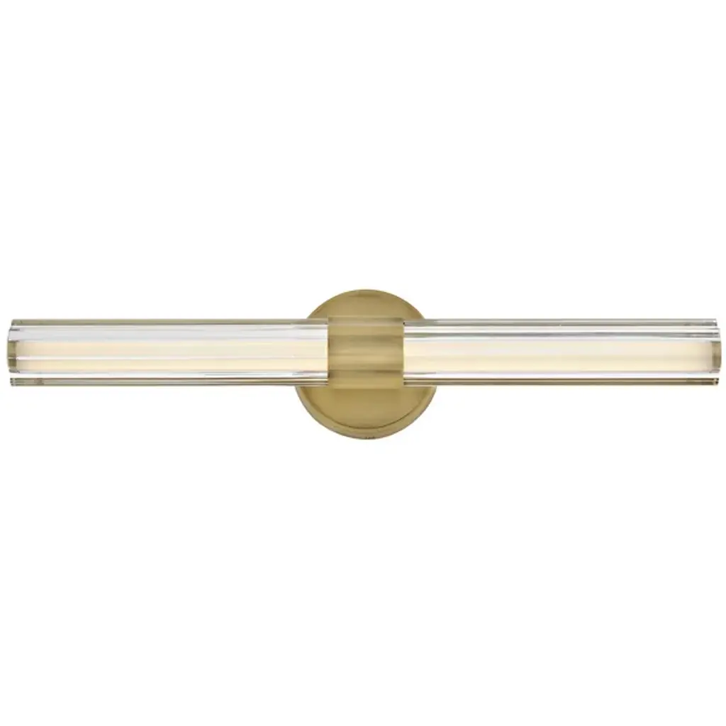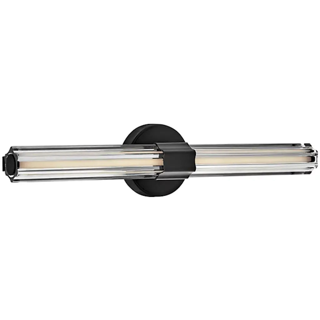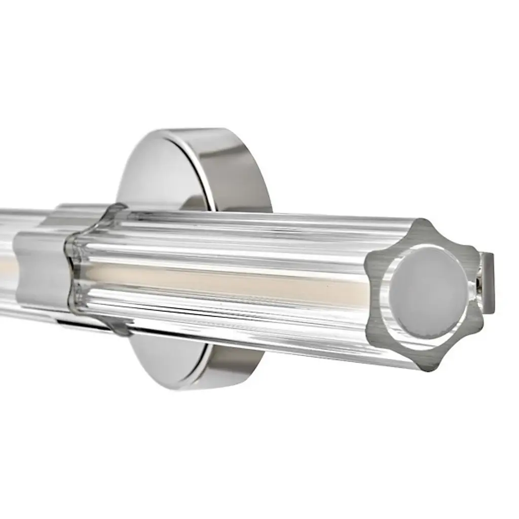 The sophisticated silhouette of the Georgette LED Vanity Light from Hinkley is elevated by clear fluted crystal, crafting a stunning fixture that exudes bold symmetry and captivating details. The chic central cuff and back plate contribute to a harmonious balance, offering a touch of contrast that effortlessly complements any space. With its refined design and intricate elements, Georgette becomes a statement piece that adds a touch of elegance and sophistication to your surroundings, creating a captivating focal point with its timeless aesthetic appeal.