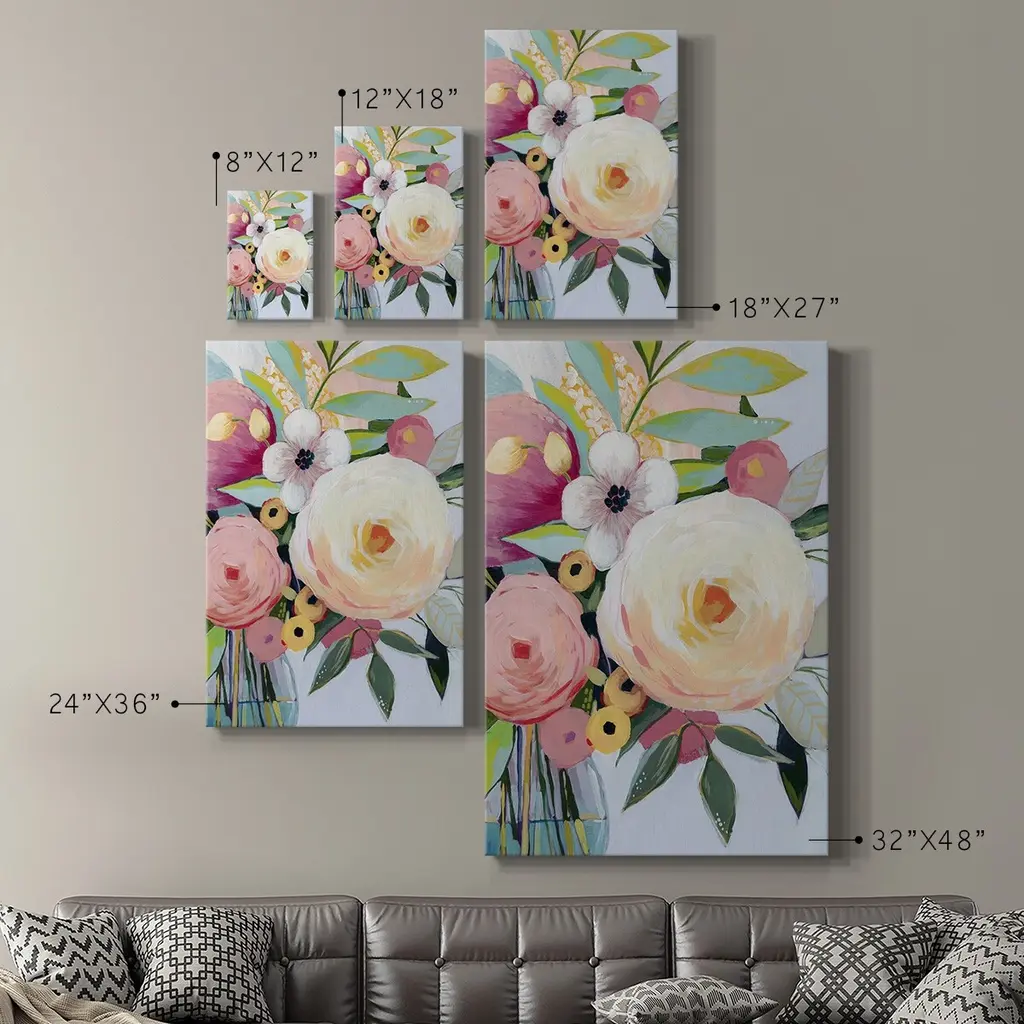 Georgia Bouquet II Premium Gallery Wrapped Canvas - Ready to Hang A premium hand stretched gallery wrapped canvas print created to last. Featuring a beveled a solid wood stretcher bar, each piece comes ready to hand 6 SIZES AVAILABLE 8''X12'' - Overall Size 12''X18'' - Overall Size 18''X27'' - Overall Size 24''x36'' - Overall Size 32''x48'' - Overall Size 40''x60'' - Overall Size Each piece is made to order. Built to Last Each piece comes ready to hang Solid wood stretcher Fade and Water resistant Made domestically