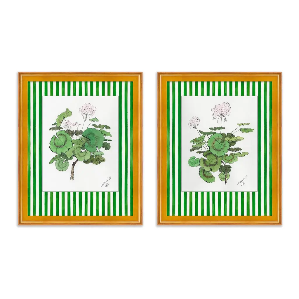 Geranium With Green Stripe, Diptych By Lia Burke Libaire In Gold Frame, Small Art Prints, Set Of 2