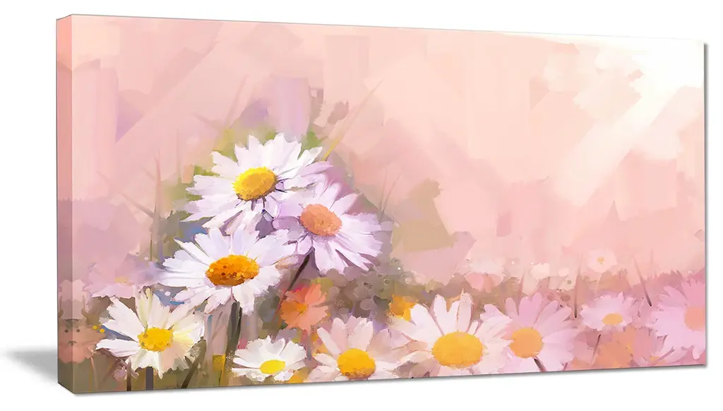 Gerbera Flowers On Soft Color Back, Floral Canvas Art Print, 32"x16"