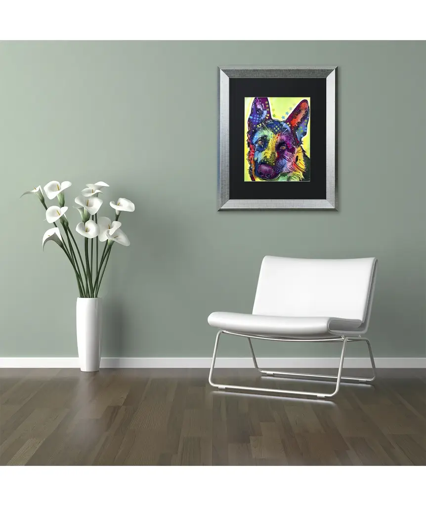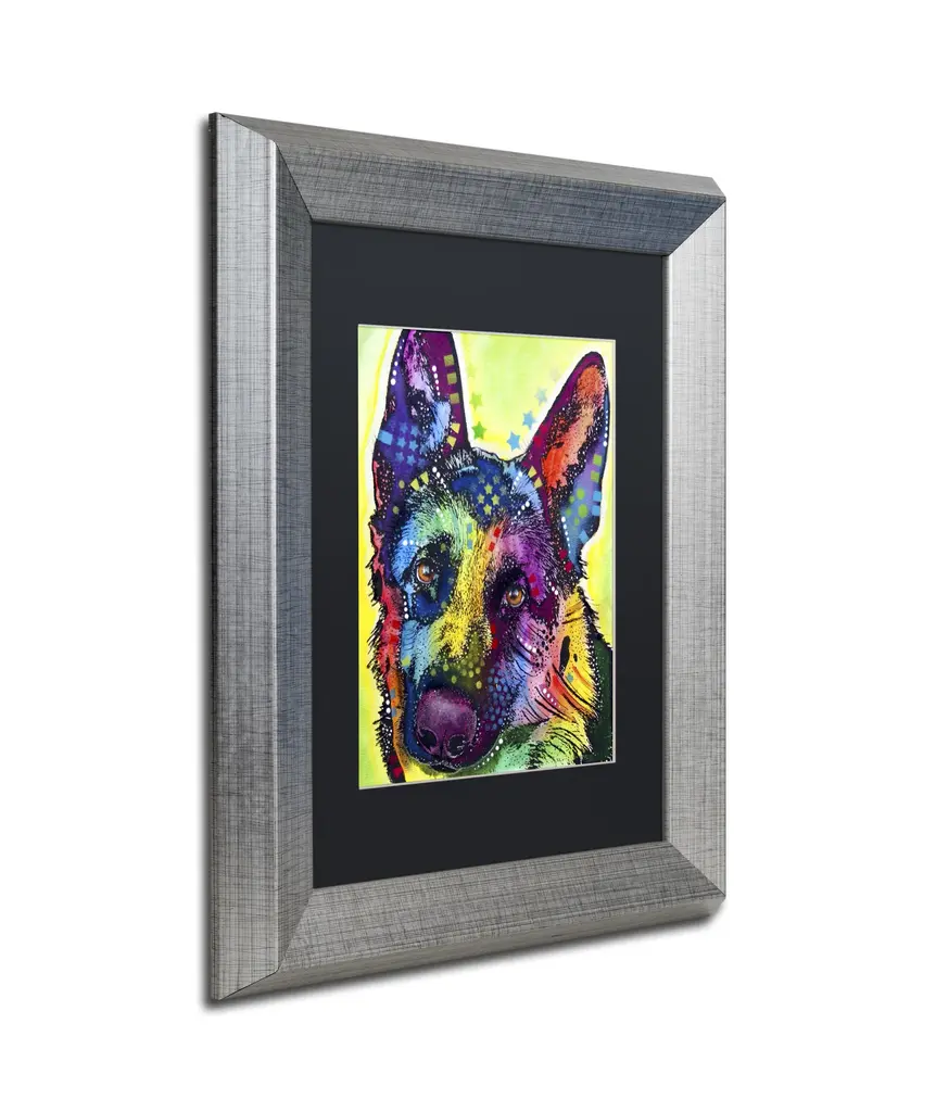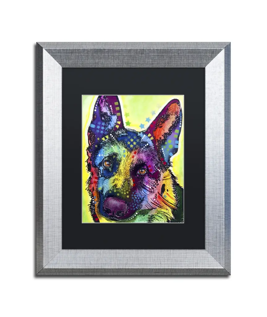 Title: German ShepherdArtist: Dean RussoProduct Type: Silver Framed Canvas ArtSize: 11" x 14"Matte Color: BlackMade in the USA.Art and animals. These two passions define Dean, a Brooklyn, New York-based artist who uses vibrant Pop Art colors and bold abstract patterns to give a voice to his favorite subject: animals. Dean grew up in a home filled with art supplies, and from an early age began drawing cartoon characters, which became a great influence in his later work. After studying graphic design and fine arts at the School of Visual Arts and Pratt Institute, Dean began to paint primarily celebrity portraits, but his two Cocker Spaniels became his greatest inspiration. Dean's main subjects are dogs, with pit bulls representing the majority of his work. Dean hopes to convey the care and devotion of animal-lovers of every kind, from dogs and cats to horses and beyond.An 8" x 10" giclee print under acrylic in an 11" x 14" silver frame. Giclee (jee-clay) is an advanced printmaking process for creating museum quality fine art reproductions. A clear acrylic facing is added to protect the print. The piece is fully assembled by professional framers and comes ready to hang.Materials: Canvas: 100% Cotton, Frame: MDF, Matte: Paper-Laminated 100% Wood Fiber Core, Facing: Acrylic