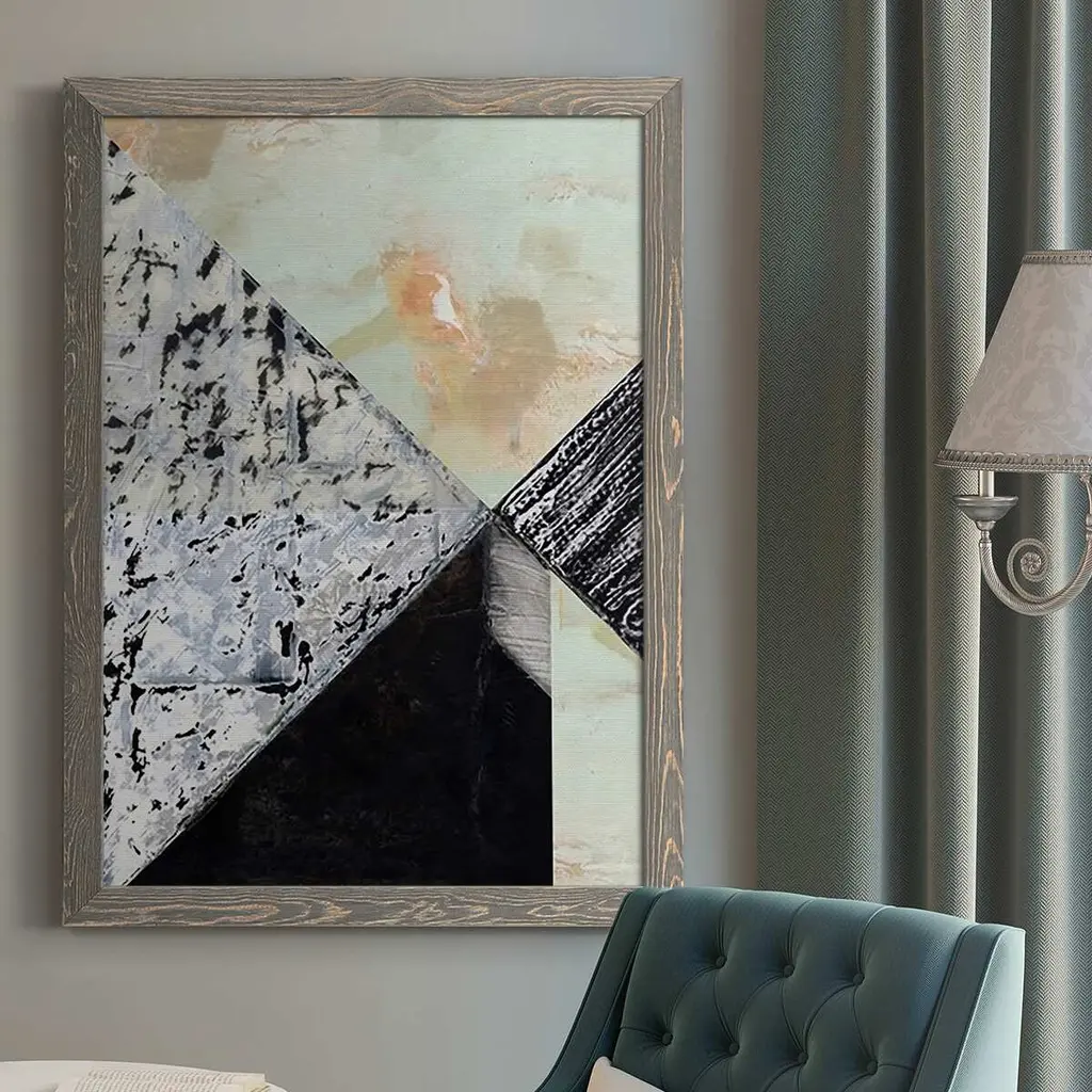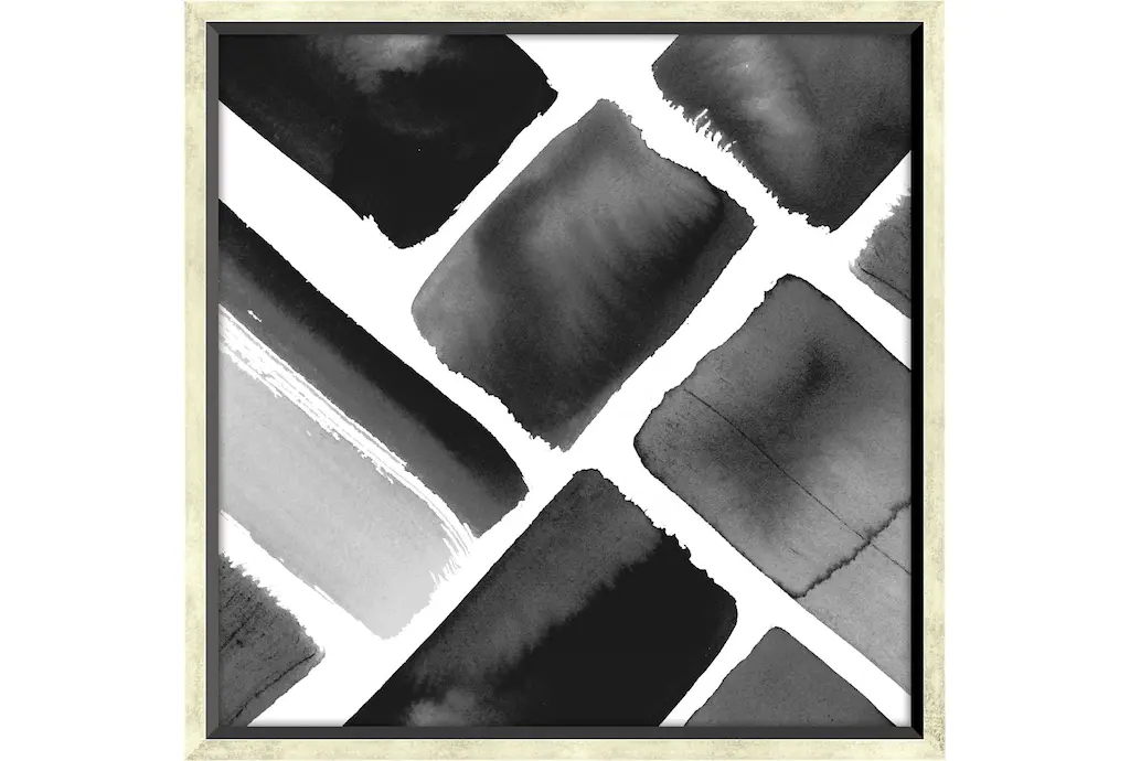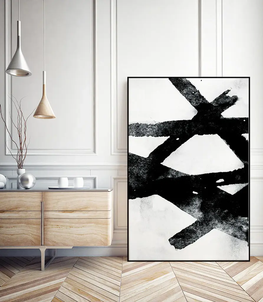 Your ready to hang artwork is printed on canvas then stretched and mounted to a 2-inch thick - hand stained black wood frame. Arrives at your door complete with an easy to use self-leveling hangking kit.