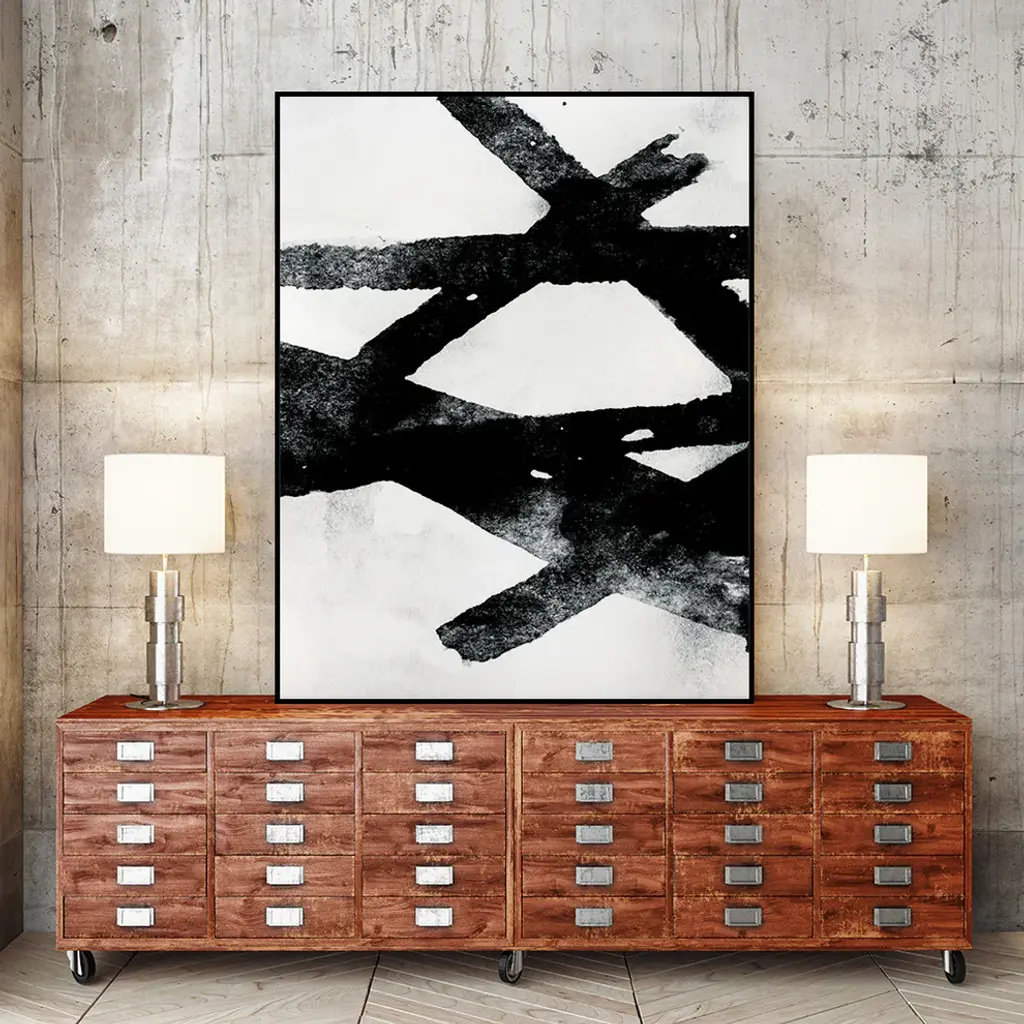 Your ready to hang artwork is printed on canvas then stretched and mounted to a 2-inch thick - hand stained black wood frame. Arrives at your door complete with an easy to use self-leveling hangking kit.
