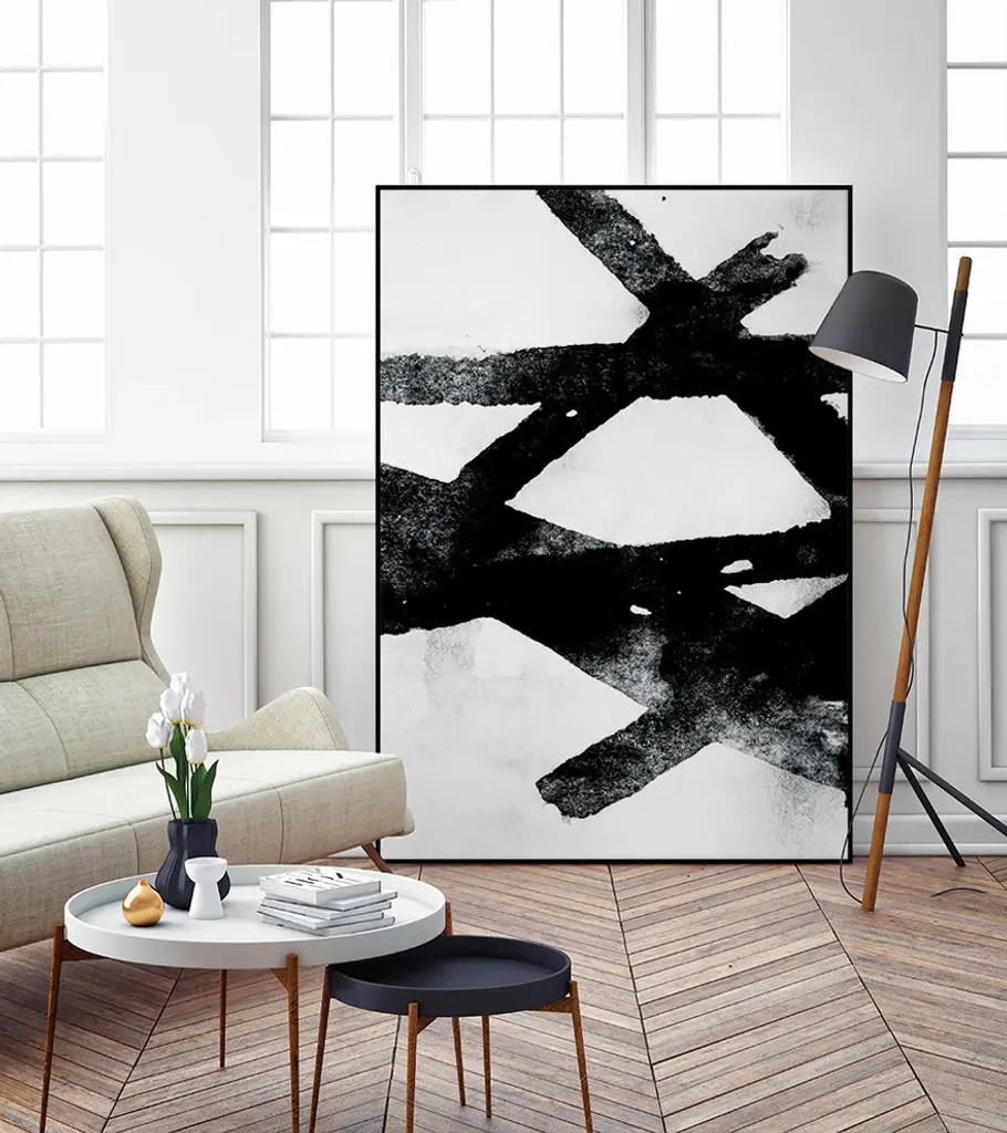 Your ready to hang artwork is printed on canvas then stretched and mounted to a 2-inch thick - hand stained black wood frame. Arrives at your door complete with an easy to use self-leveling hangking kit.