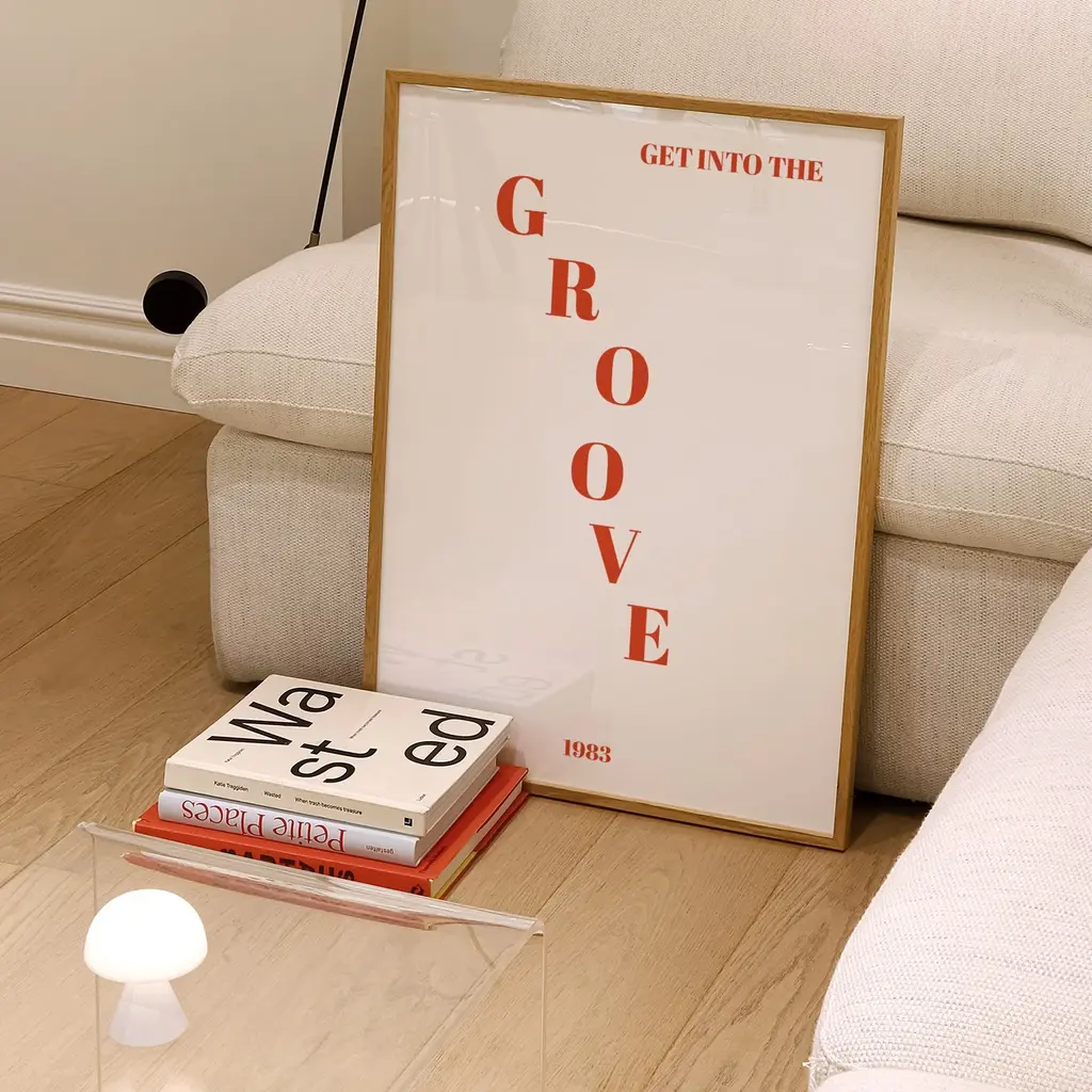 Get into the groove, inspired by Madonna, the pop queen herself. Get into the groove has a playful 80s feel using one bold colour and one strong statement, when life gets tough we say, turn up some 80s classic and Get into your own groove. Using minimalism design and taking influence from 60s playful book covers and signs. Add this to any space to make yourself smile and fill the room energy with some nostalgic happy feelings. A pop of colour to melt those blues away.Sold without frameGiclée printed on Munken pure smooth cream paper which is certified by the Rainforest Alliance Program for FSC® Standards.