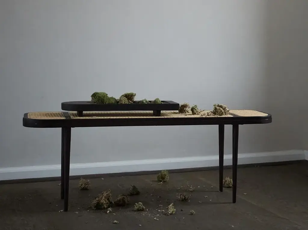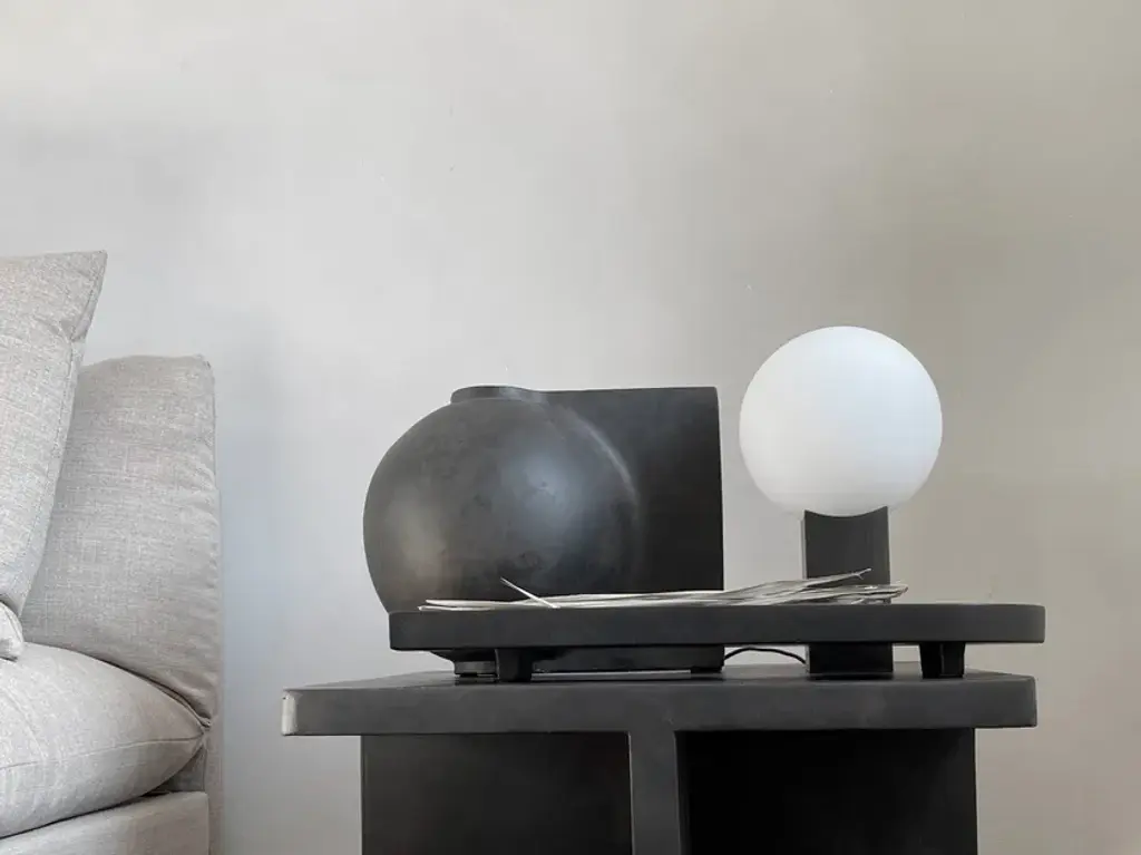 The Geta Tray is inspired by Japanese decoration trays, where the platform is elevated above the table surface, highlighting a specific object or decoration piece. The name is a reference to the classic Japanese Geta shoes with two prongs.Geta is cast in solid fiber concrete, adding a certain heaviness to the brutalistic object, while also creating a unique and refined surface texture. With its sculptural and architectural shape, it can be used for various decoration purposes or stand alone to create an art piece. Hand glazed natural product therefore the colors may variate. Not waterproof safe.