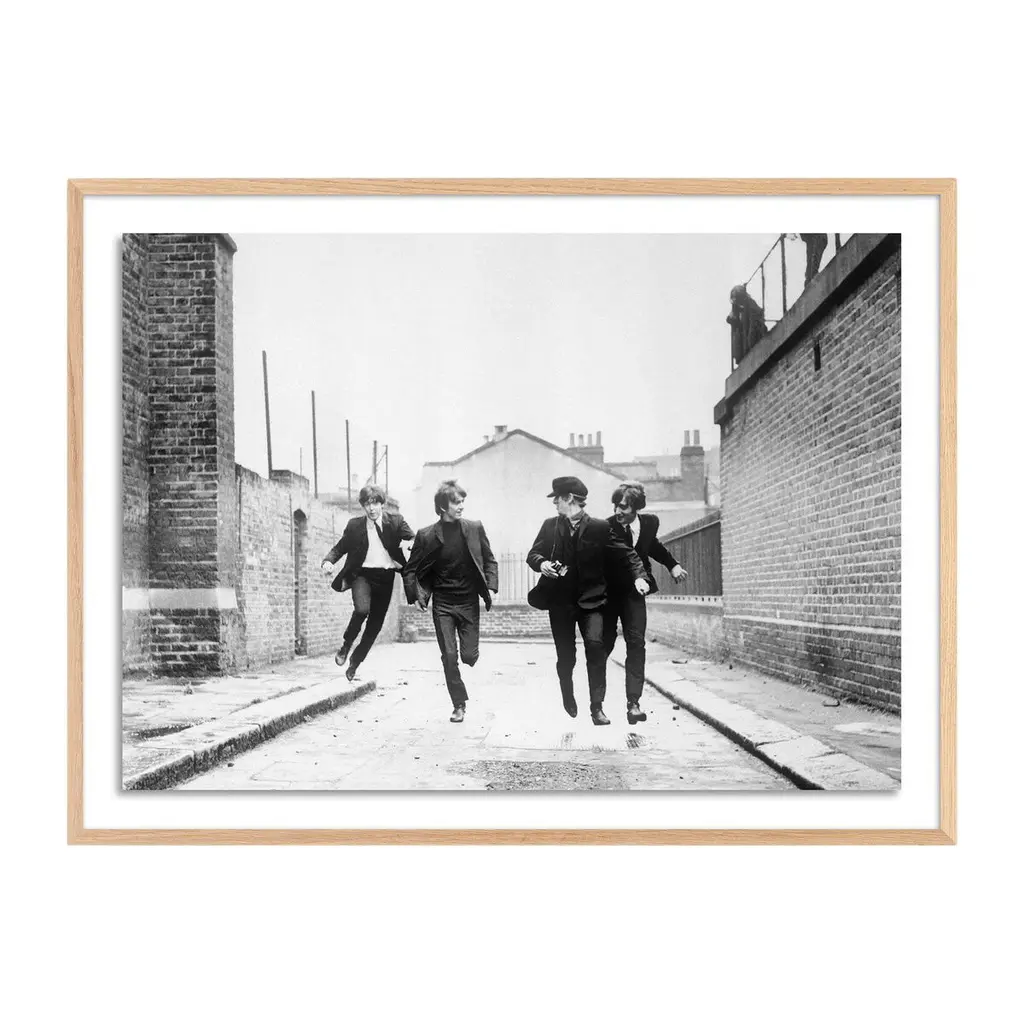 The Beatles strike a pose on the roof of the Palace Court Hotel in Bournemouth in 1964. Courtesy of Getty Images. Printed on premium photo paper and float-mounted within a high-quality frame. Handmade in Austin, Texas, each print includes a certificate of authenticity commemorating the exclusive partnership between Getty Images and Four Hands Art Studio.