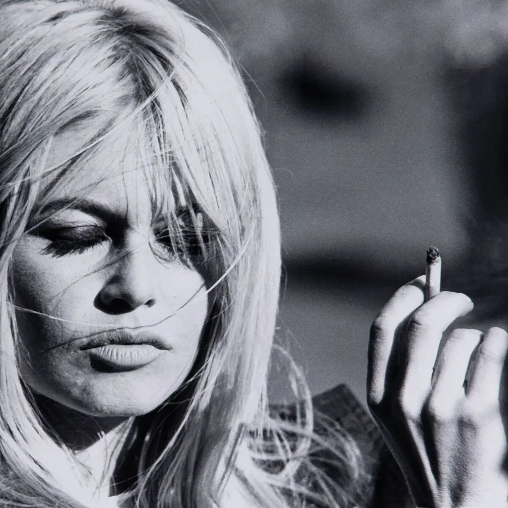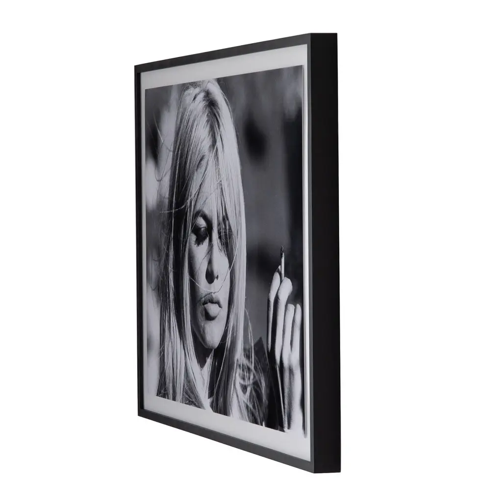 French actress Brigitte Bardot smokes a cigarette. Photo courtesy of Getty Images. Float-mounted and framed within black-finished American maple for a museum-quality look. Handmade in Austin, Texas, each print includes a certificate of authenticity commemorating the exclusive partnership between Getty Images and Four Hands Art Studio.