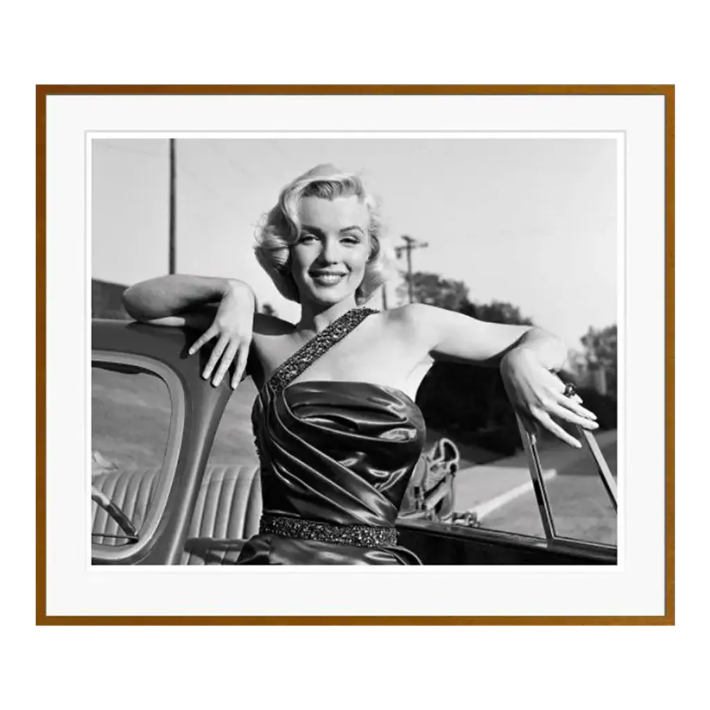 Brigitte Bardot relaxes on her new Caravelle with her pet dachshund closeby at her home in St. Tropez, France. Courtesy of Getty Images. Printed on premium photo paper and float-mounted within a high-quality frame. Handmade in Austin, Texas, each print includes a certificate of authenticity commemorating the exclusive partnership between Getty Images and Four Hands Art Studio.