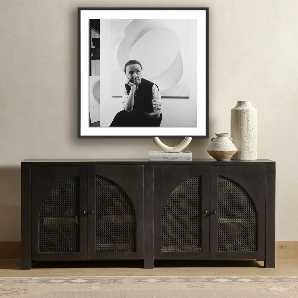 Artist Georgia O'Keeffe photographed in black and white. Handmade in Austin, Texas, each print includes a certificate of authenticity commemorating the exclusive partnership between Getty Images and Four Hands Art Studio.