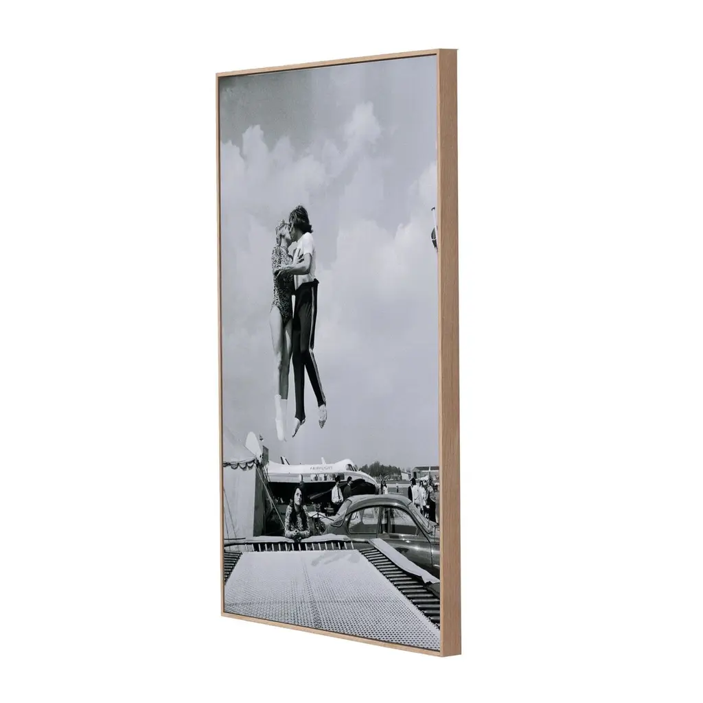 A mid-air kiss. Married world trampolining champions Paul Luxon and Ute Czech, photographed at the Biggin Hill Air Fair in 1973. A high-definition metal print produced on ChromaLuxe using dye sublimation print technology and float-mounted in a vertical grain floater frame of white-finished American oak for a modern, museum-quality look. Photo by Chris Ware, courtesy of Getty Images.