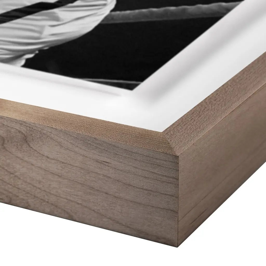 Muhammad Ali punches Joe Frazier during the seventh round of their boxing match. Courtesy of Getty Images. Printed on premium photo paper and float-mounted within a high-quality frame. Handmade in Austin, Texas, each print includes a certificate of authenticity commemorating the exclusive partnership between Getty Images and Four Hands Art Studio.
